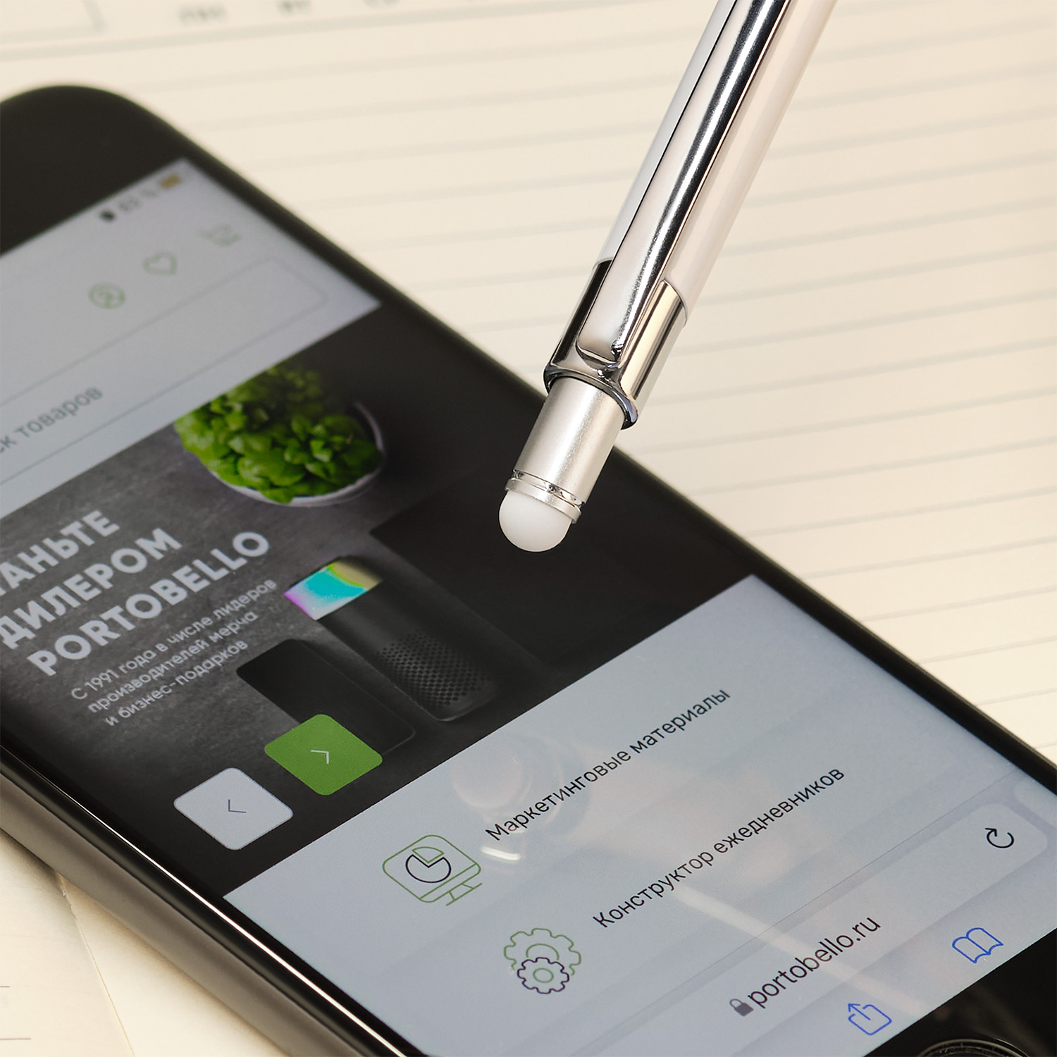 Тонкая, идеально сбалансированная ручка приятно лежит в руке. Оснащена стилусом для работы с сенсорными экранами.