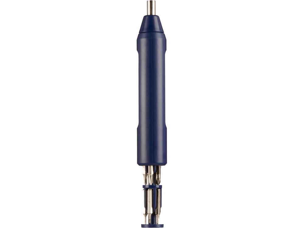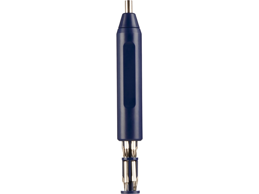 Отвертка-ручка Drill это универсальная отвертка с сменными битами. Благодаря форме корпуса идеально лежит в руке. Отвертка легкая и занимает мало места. Выдвижной механический контейнер бит позволяет хранить в себе весь набор из 10 сменных бит. Ручка инструмента изготовлена из пластика, биты – из нержавеющей стали. -
