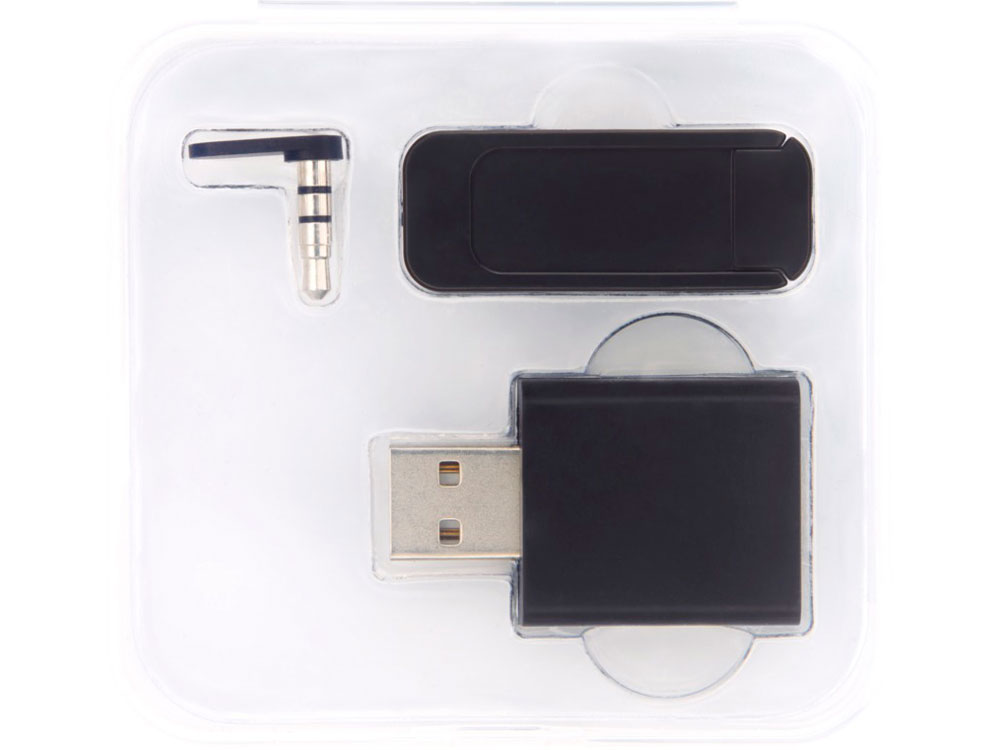 Комплект для обеспечения конфиденциальности цифровых данных с блокиратором данных USB, блокиратором веб-камеры и блокиратором аудиоразъема. Защитник данных USB предотвращает случайный обмен данными при подключении мобильного устройства к компьютеру или общественной зарядной станции. Это изделие блокирует любую передачу данных во время зарядки устройства, предотвращая кражу данных или установку вредоносных программ. Блокиратор веб-камеры можно прикрепить перед веб-камерой ноутбука, чтобы заблокировать нежелательный доступ к веб-камере. Блокиратор аудиоразъема можно поместить в AUX-порт устройства, чтобы избежать прослушивания разговоров третьими лицами. Поставляется в защитном футляре. Пластик ABS. -