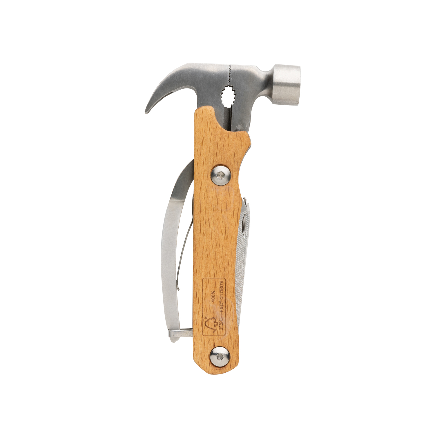 Деревянный мультитул с молотком пригодится всем, кто любит, чтобы инструменты всегда были под рукой и содержались в порядке. Универсальный и стильный мультитул изготовлен из стопроцентного бука, сертифицированного FSC, и прочной нержавеющей стали. твердость стали по Роквеллу — 42-52.