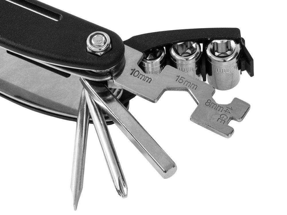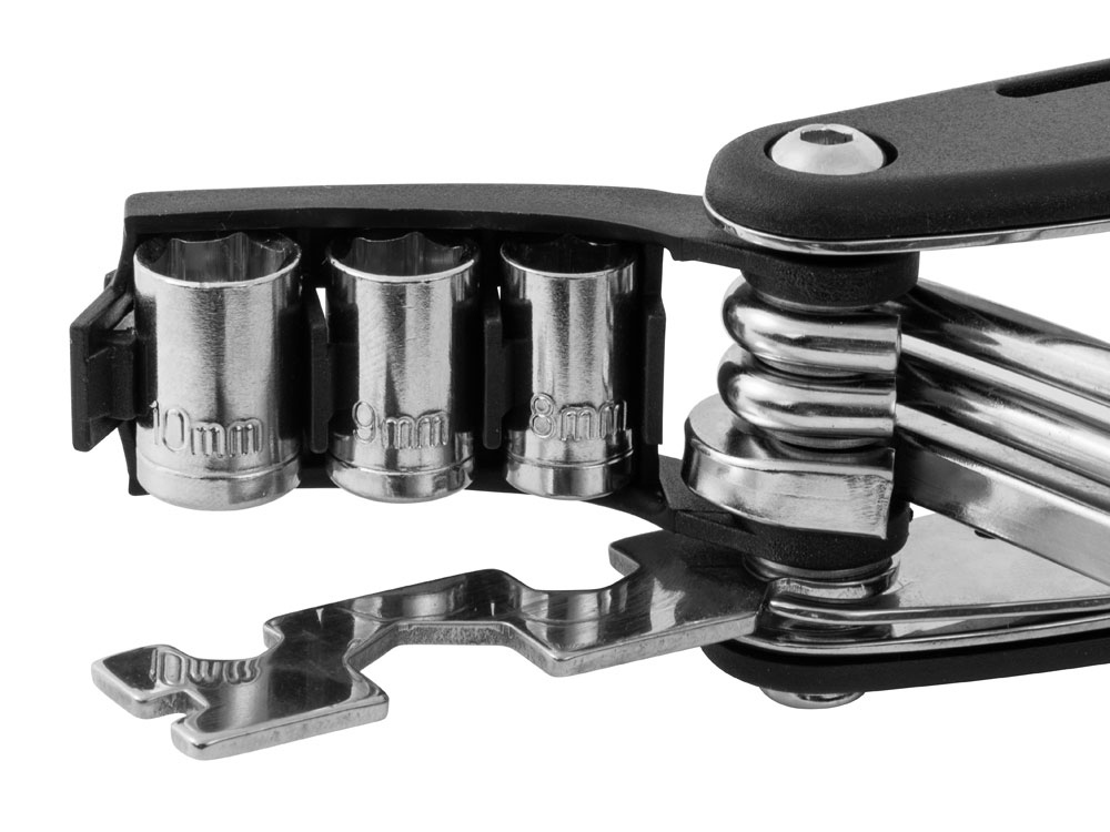 Многофункциональный инструмент от Roq сочетает в себе целых 16 функций: 6 шестигранных ключей (№ 2, № 2,5, № 3, № 4, № 5, № 6), 4 ключа (8 мм, 10 мм, 15 мм, 14GE), адаптер, крестообразную отвертку, шлицевую отвертку и 3 насадки (№ 8, № 9, № 10).