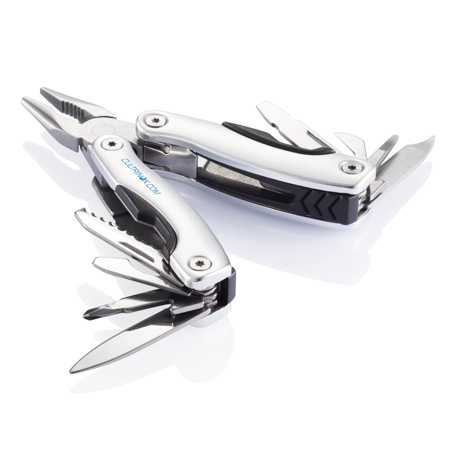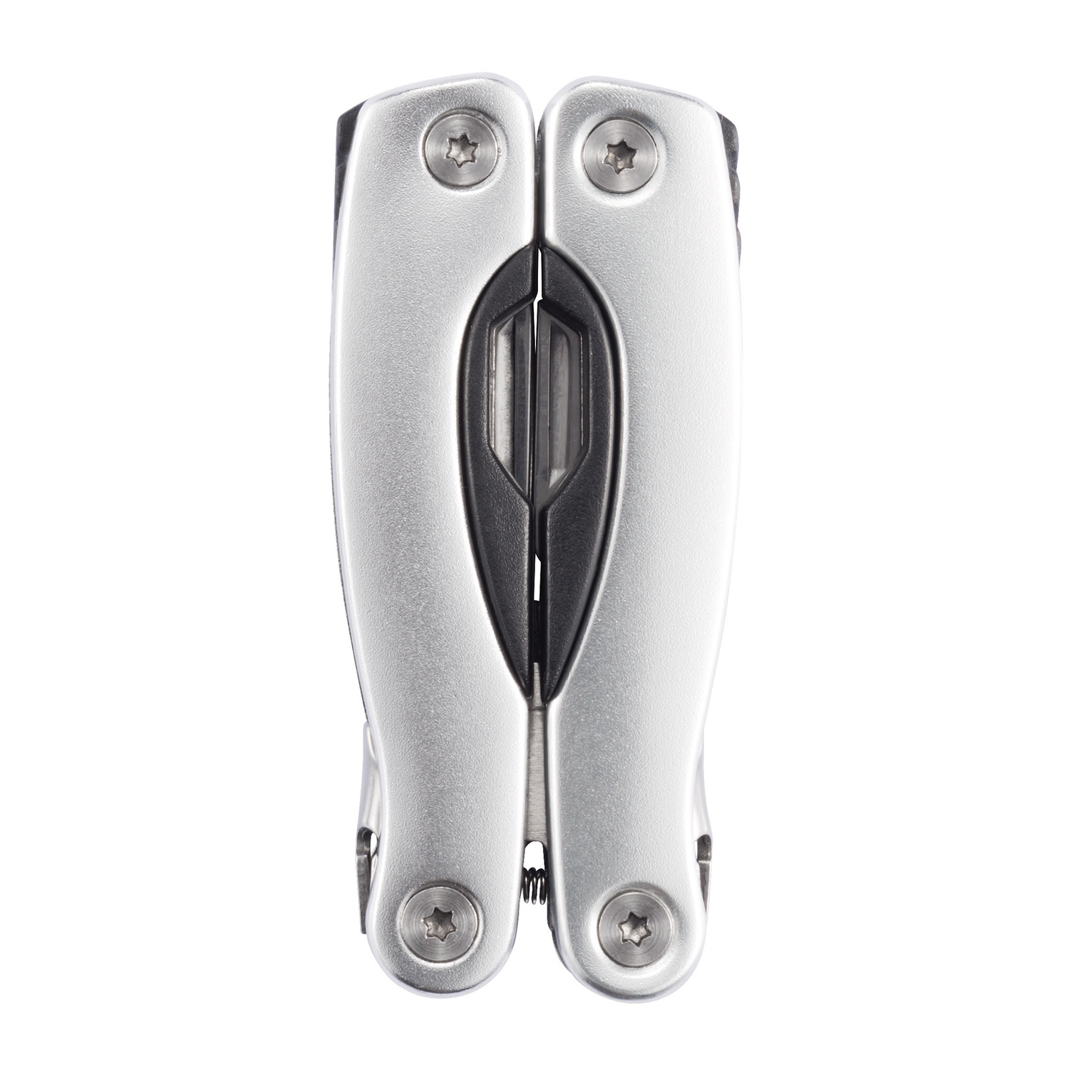 Этот мультитул из нержавеющей стали с ручками из анодированного алюминия совмещает в себе 13 функций. В комплект входит черный чехол.