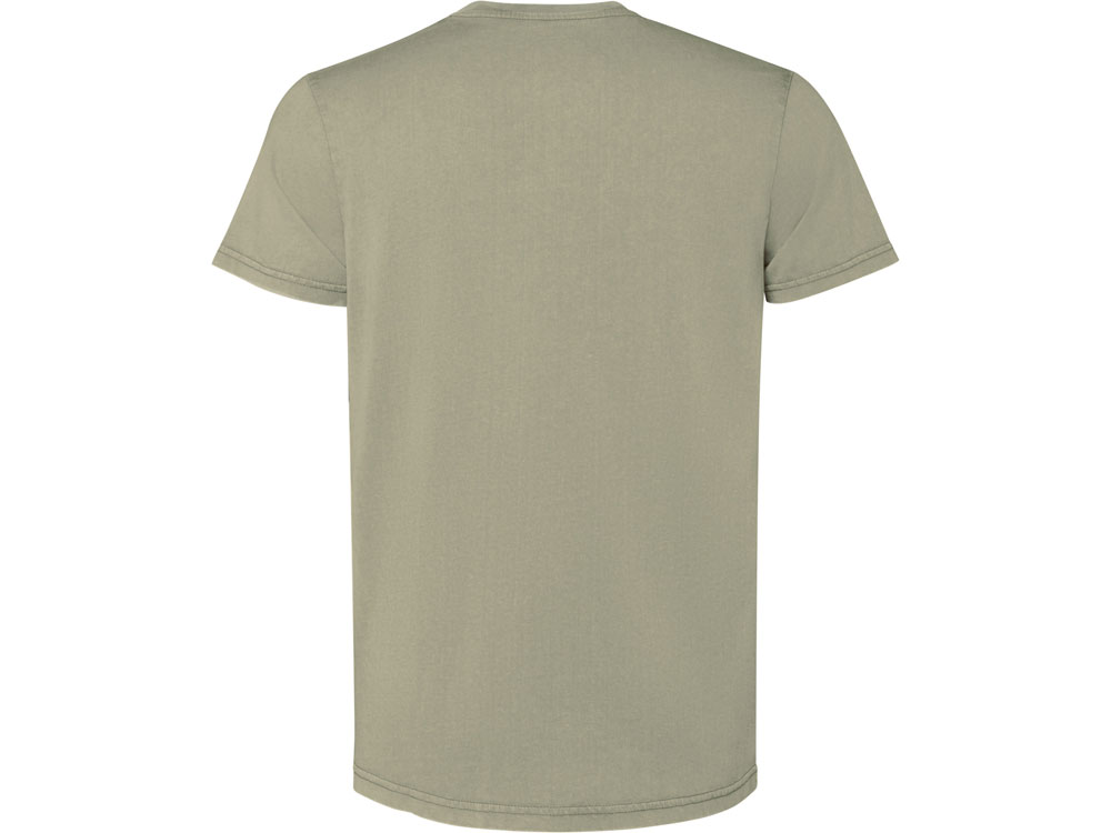 Мужская футболка с коротким рукавом из 100% хлопка с аксидной стиркой. Круглый вырез горловины из риба 1х1. Отстрочка в тон по горловине.
