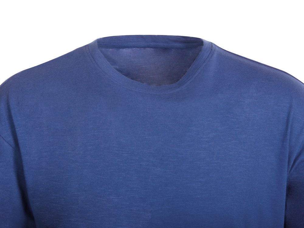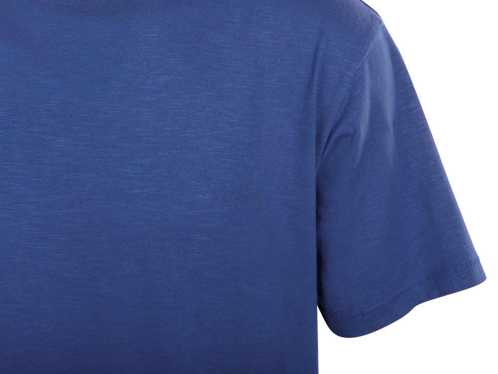 Полотно футболки имеет необычную структуру - с протяжками, но при этом гладкую поверхность, что обеспечивает идеальную поверхность для нанесения: прямая печать, трафаретная или термотрансфер прекрасно ложатся на такое полотно. Декоративная отстрочка по низу рукавов и изделия, а также отстрочка по горловине позволяют футболке дольше сохранять форму.