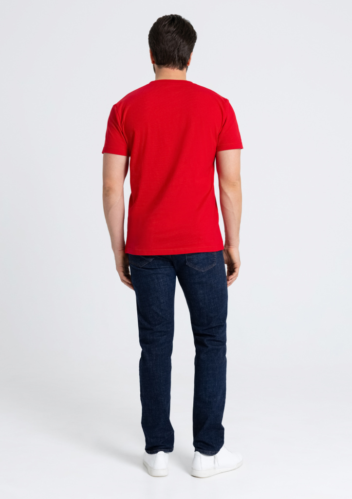 Мужская футболка прямого силуэта с округлым воротом и втачным рукавом.