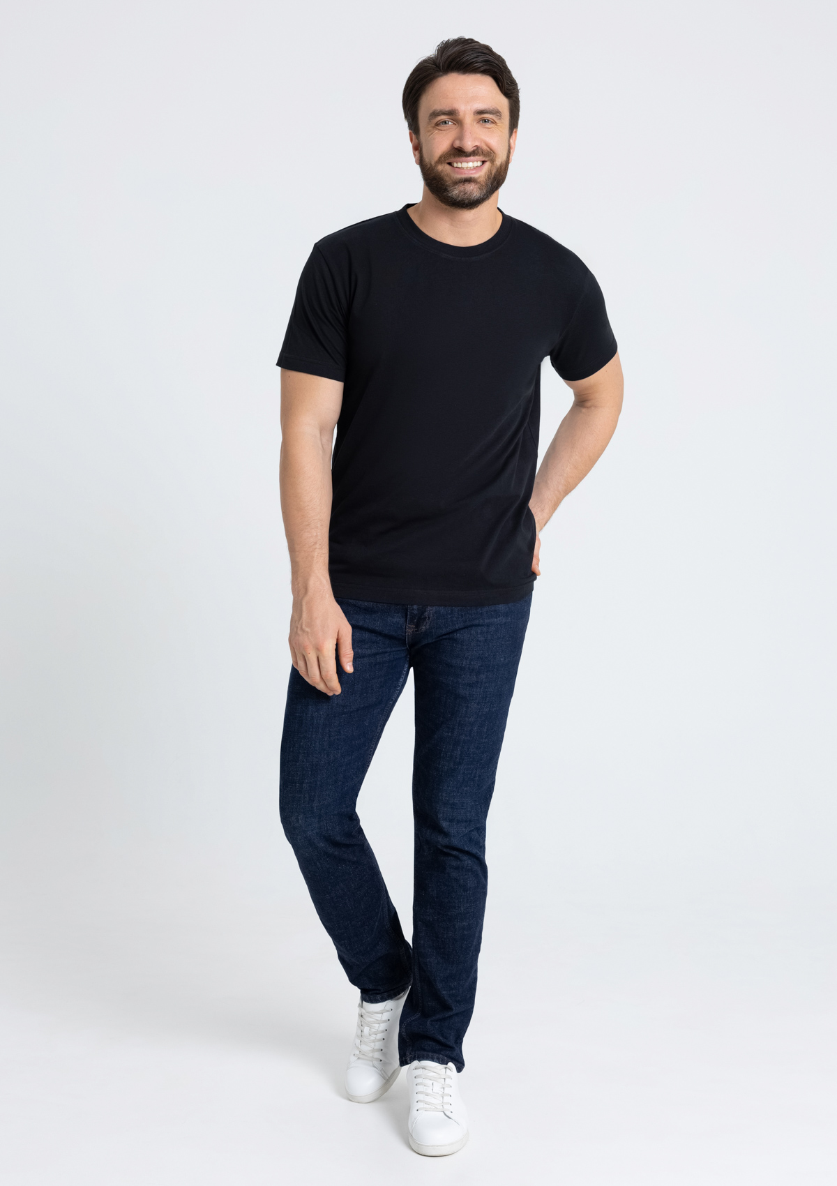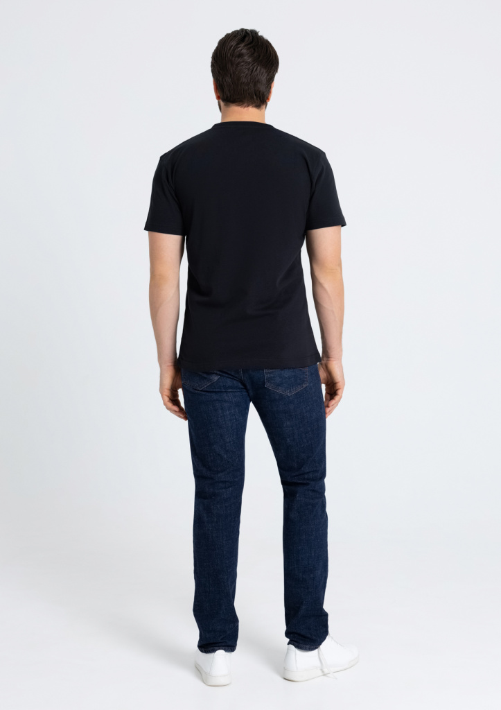 Мужская футболка прямого силуэта с округлым воротом и втачным рукавом.