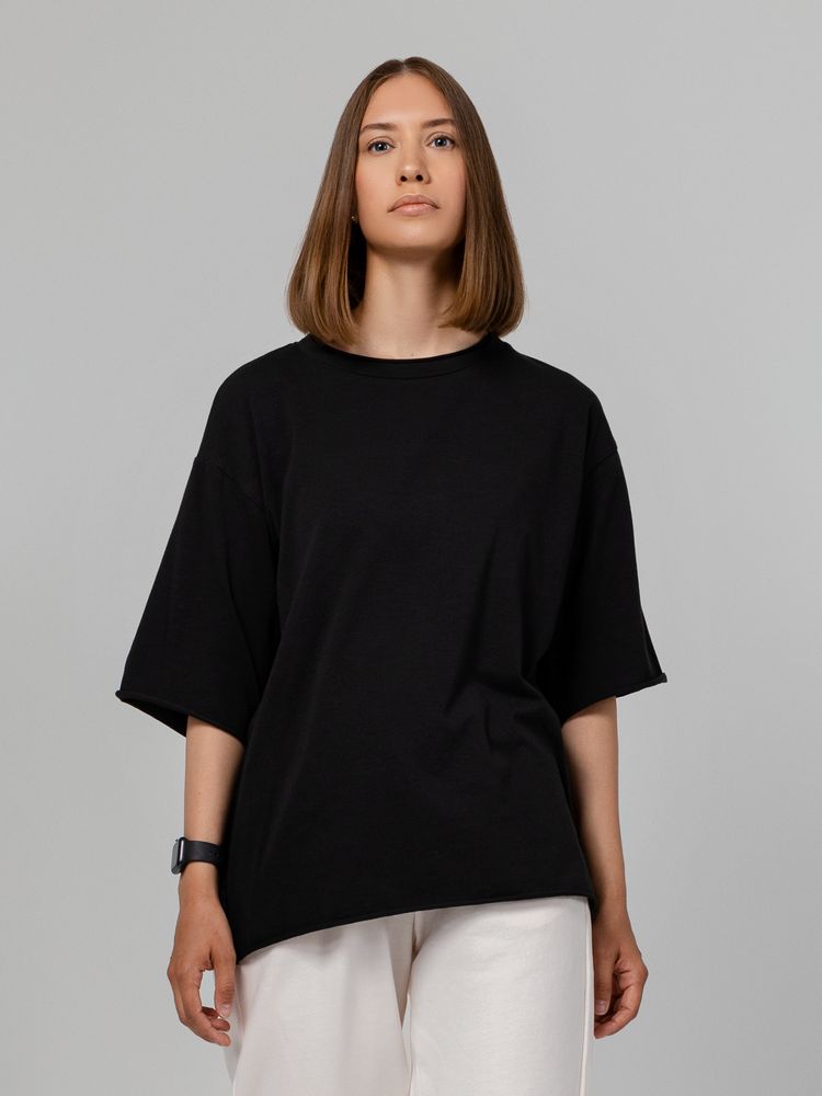 Футболка унисекс оверсайз со спущенным плечом.- Эластичный ворот