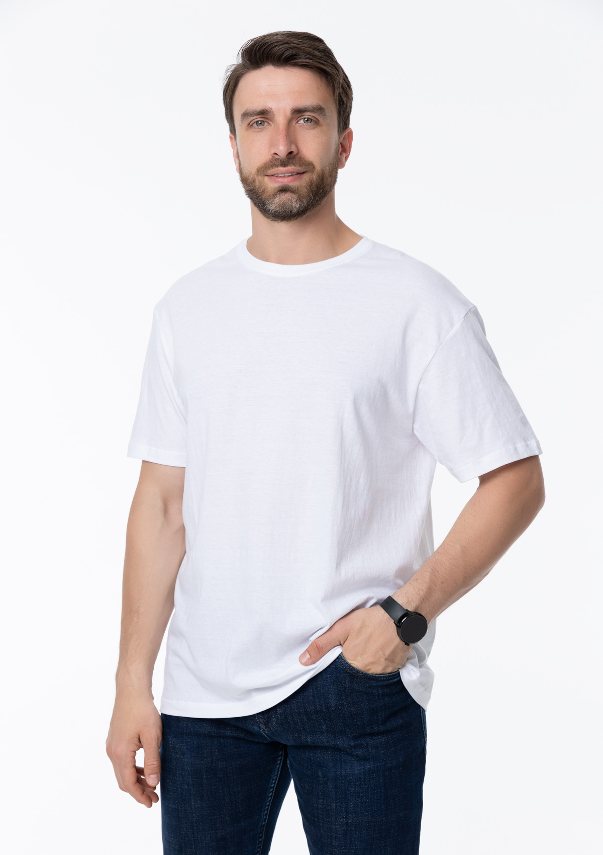 Классическая футболка прямого кроя с округлым воротом и втачным рукавом. Изделие не имеет бокового шва, что открывает новые возможности для реализации ваших креативных решений.