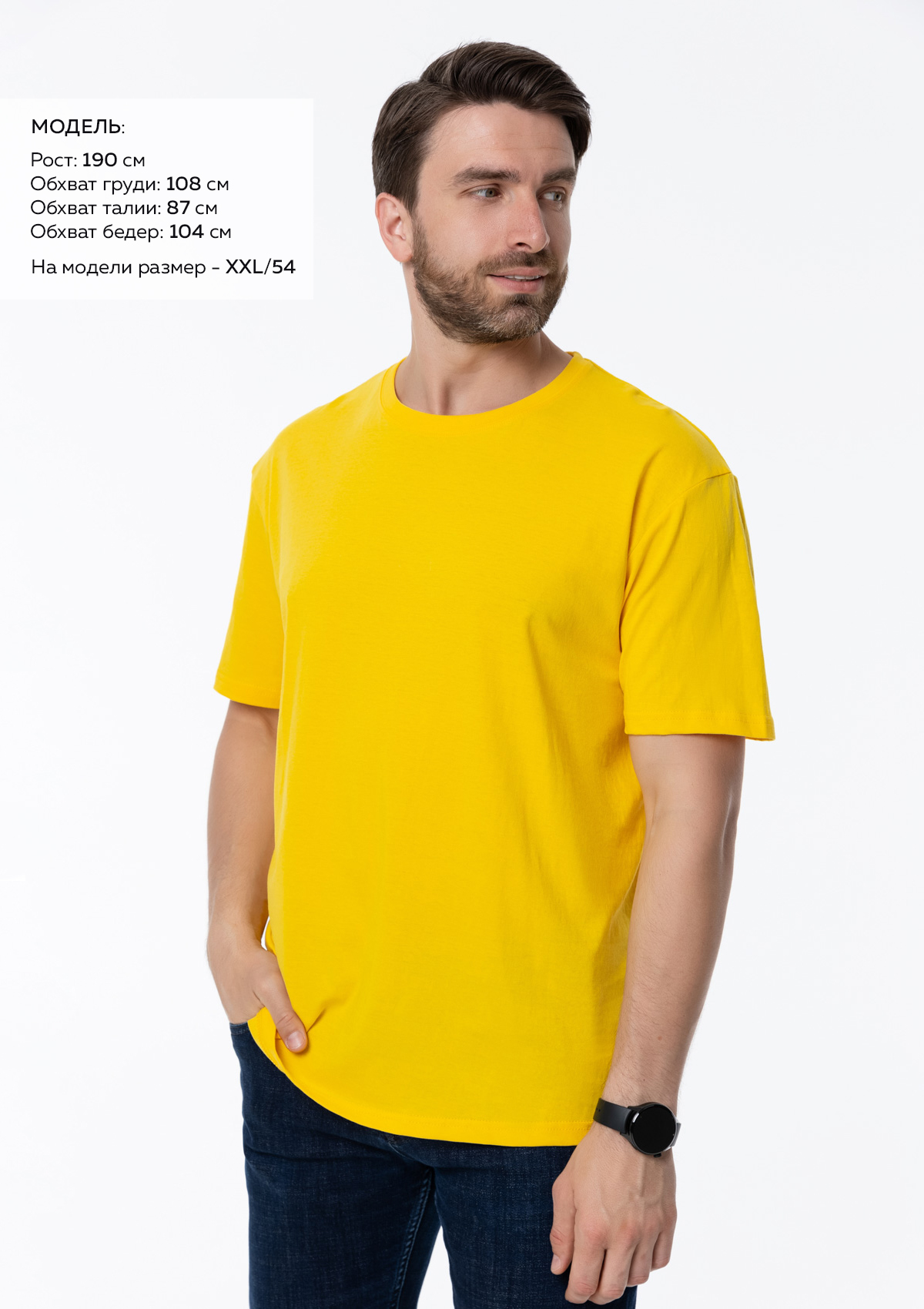 Размер мужской футболки: XXL/54. Параметры модели: рост 190 см.; обхват груди 108 см.; обхват талии 87 см.; обхват бедер 104 см.