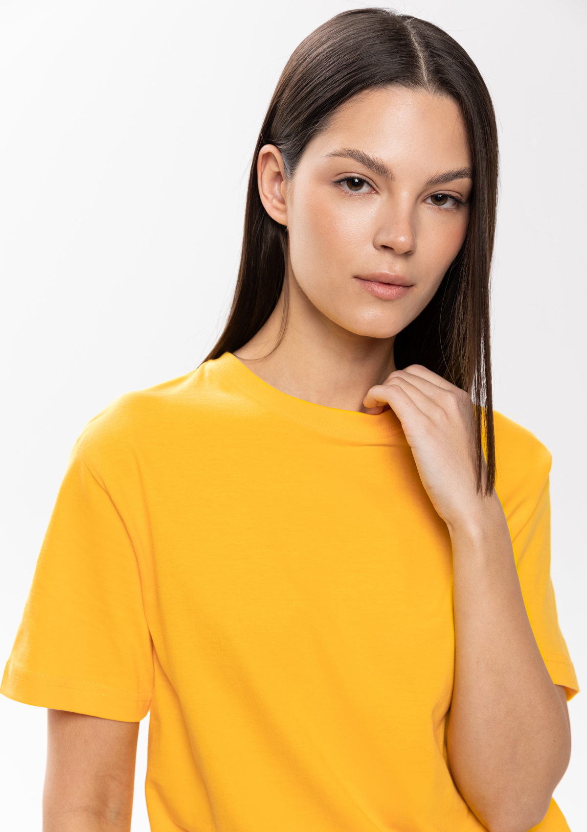 Классическая футболка прямого кроя с округлым воротом и втачным рукавом. Изделие не имеет бокового шва, что открывает новые возможности для реализации ваших креативных решений.