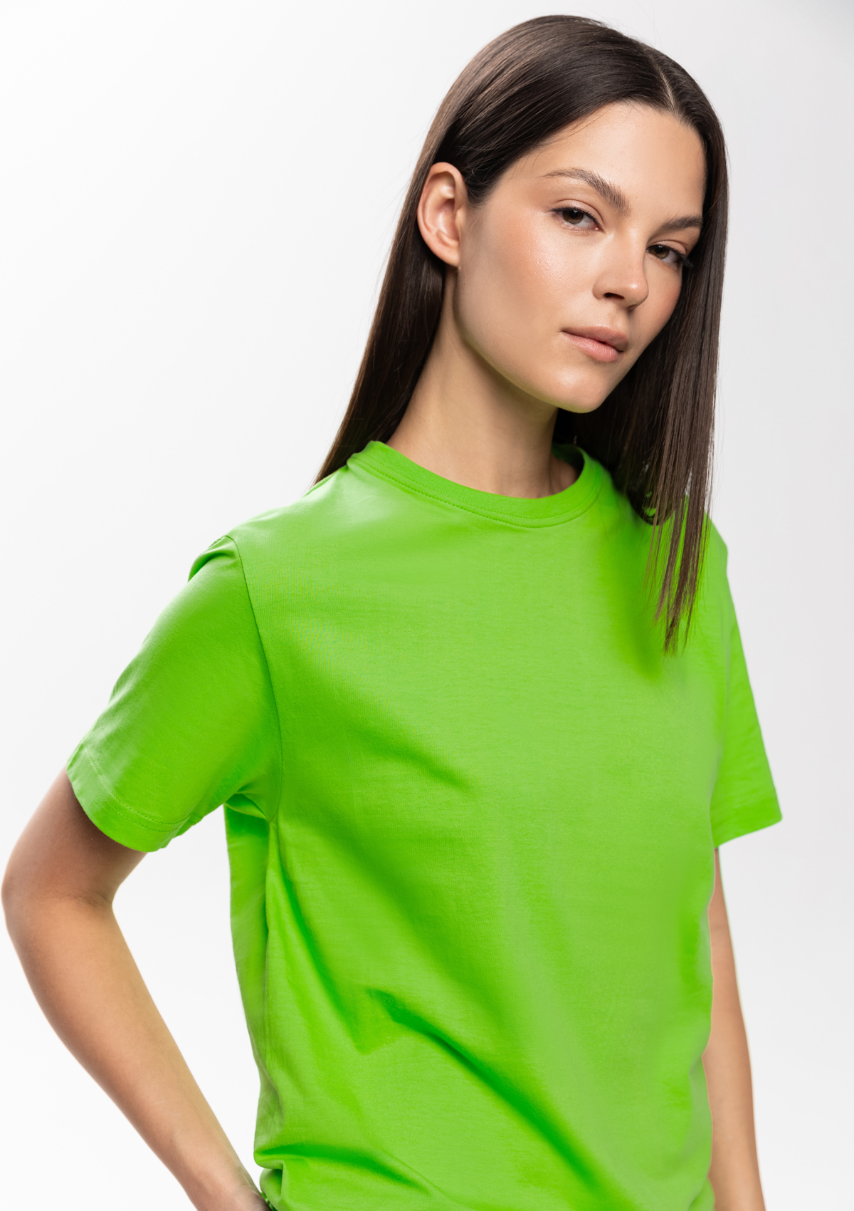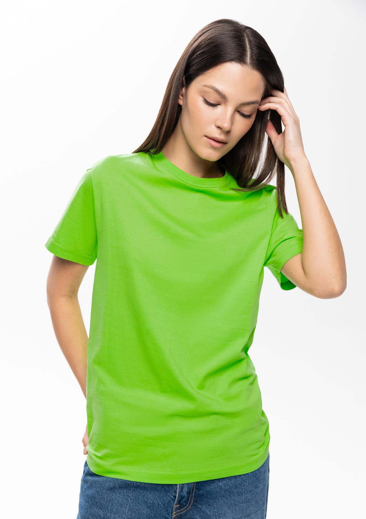 Классическая футболка прямого кроя с округлым воротом и втачным рукавом. Изделие не имеет бокового шва, что открывает новые возможности для реализации ваших креативных решений.
