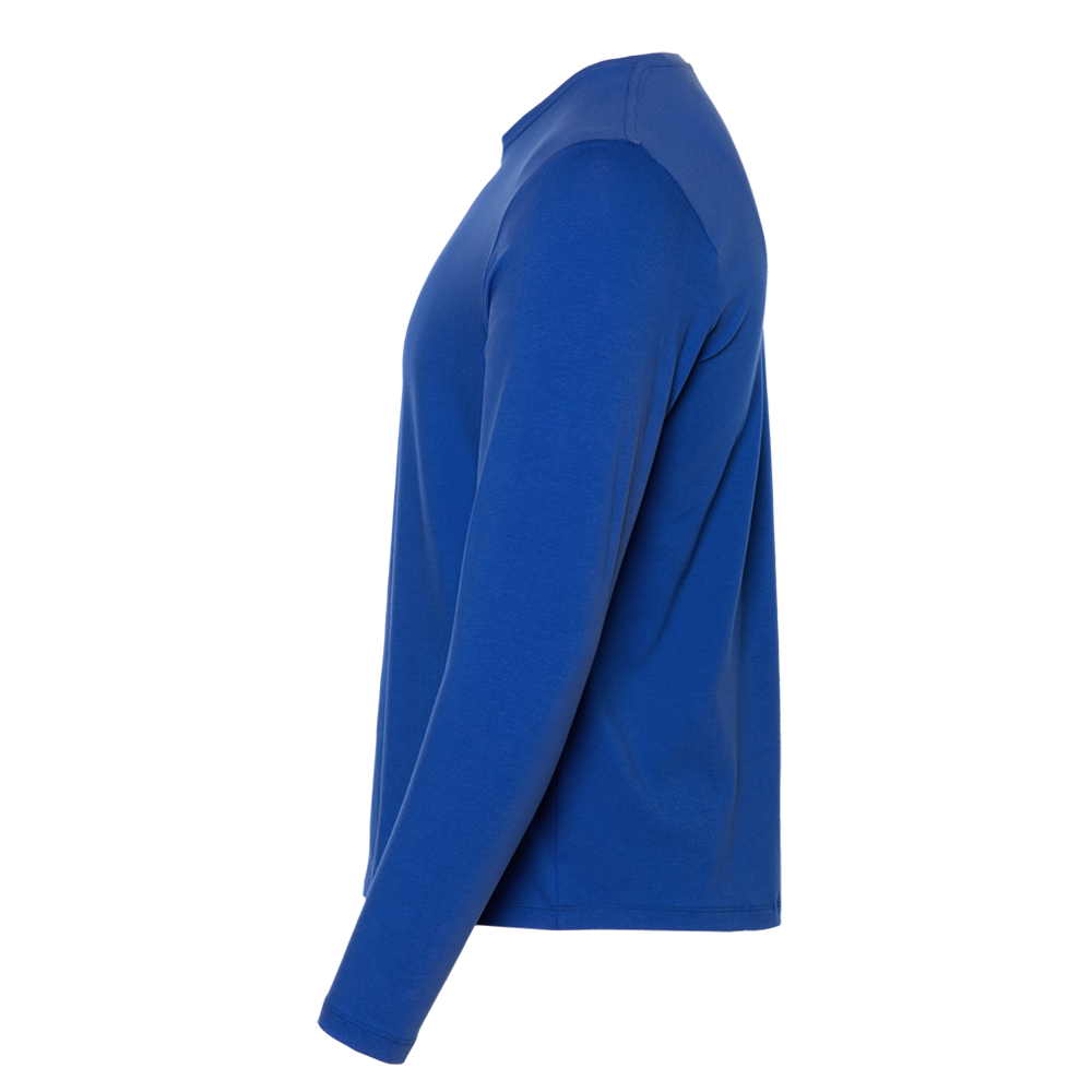 Универсальная футболка прямого силуэта с округлым воротом и длинным втачным рукавом. Плечевые швы и шов горловины усилены настрочной бейкой из основного полотна.