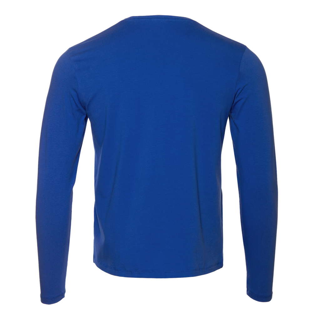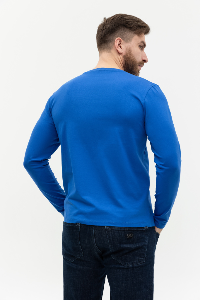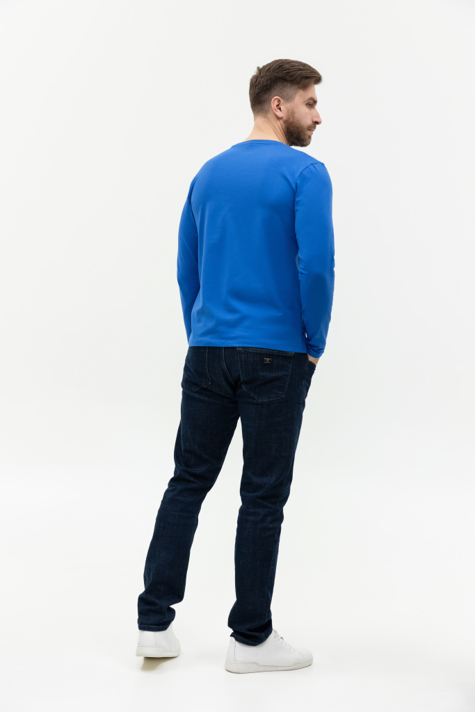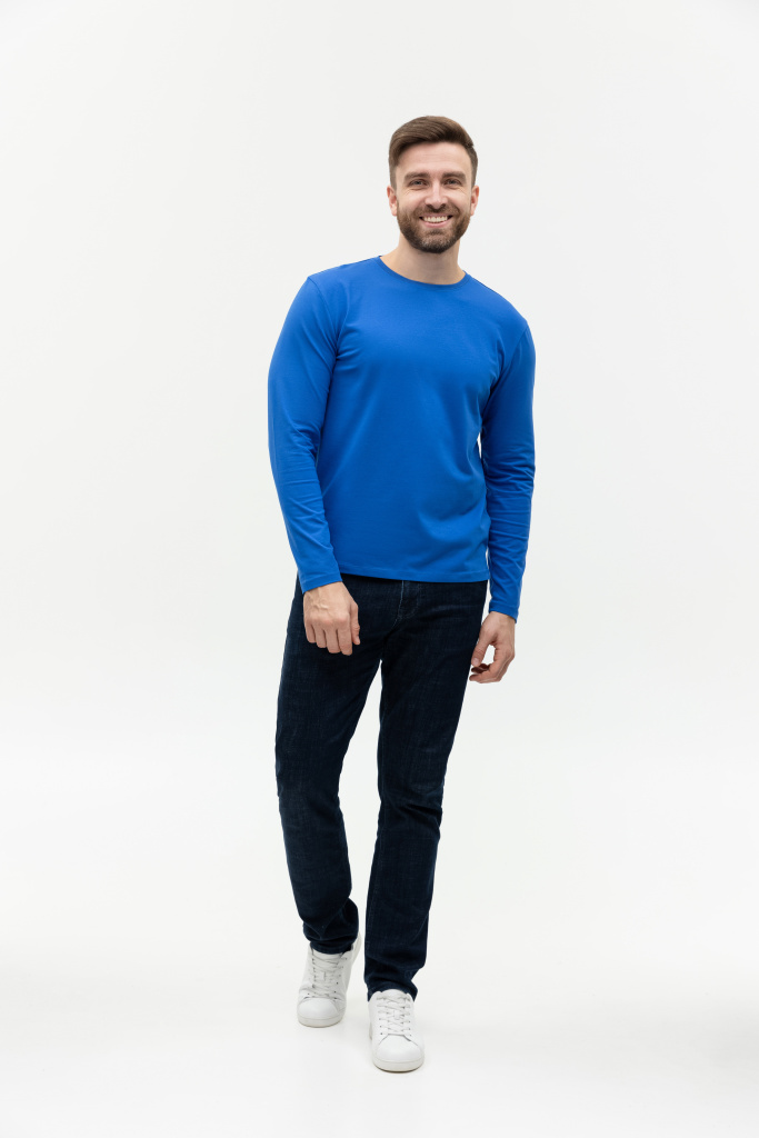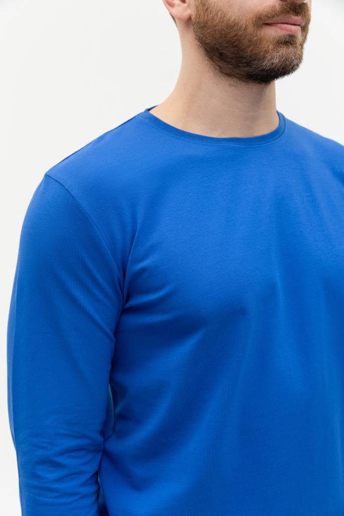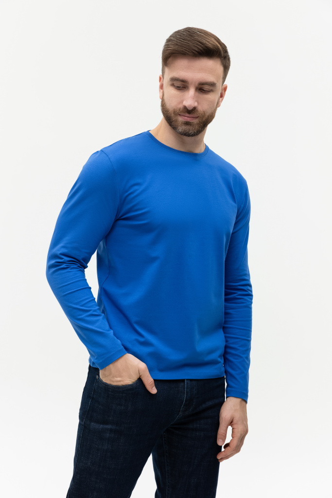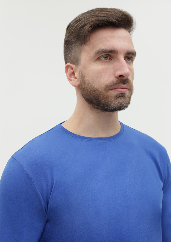 Универсальная футболка прямого силуэта с округлым воротом и длинным втачным рукавом. Плечевые швы и шов горловины усилены настрочной бейкой из основного полотна.