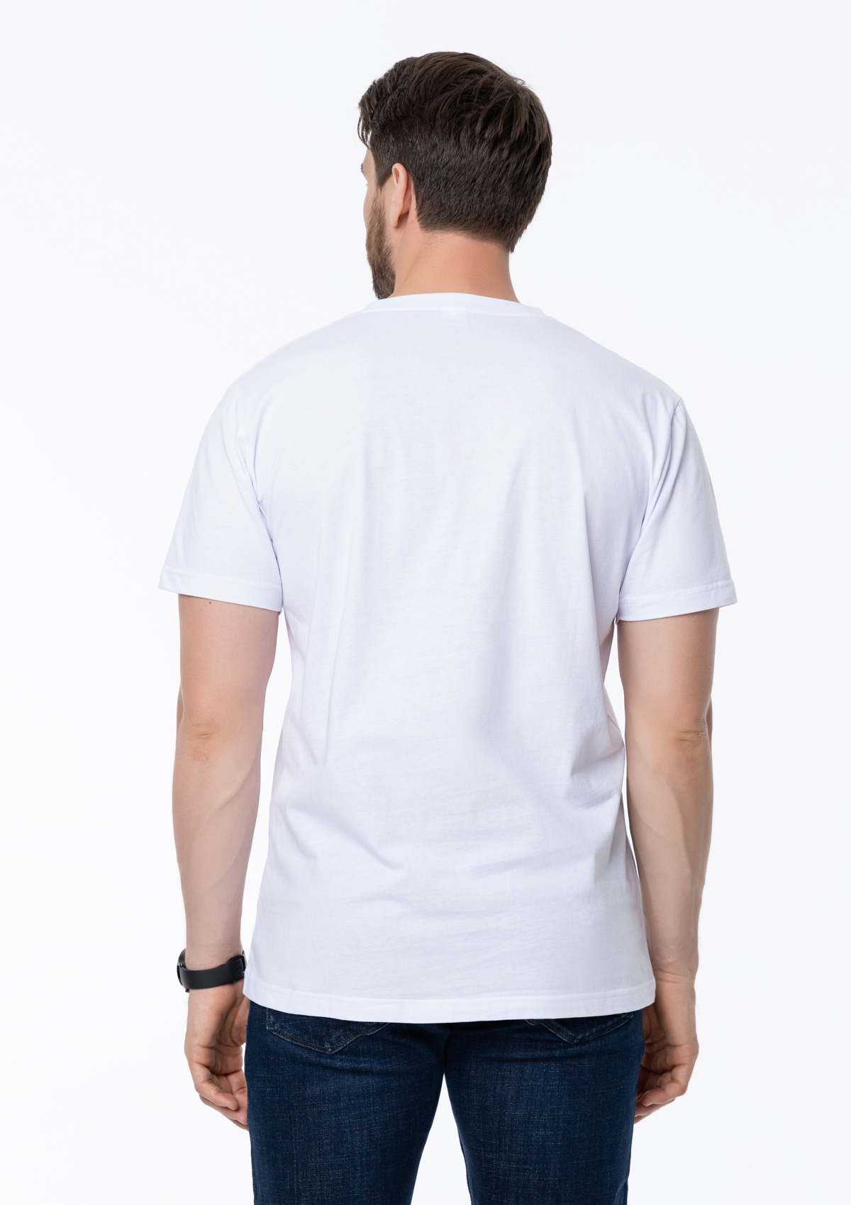 Размер мужской футболки: XXL/54. Параметры модели: рост 190 см.; обхват груди 108 см.; обхват талии 87 см.; обхват бедер 104 см.