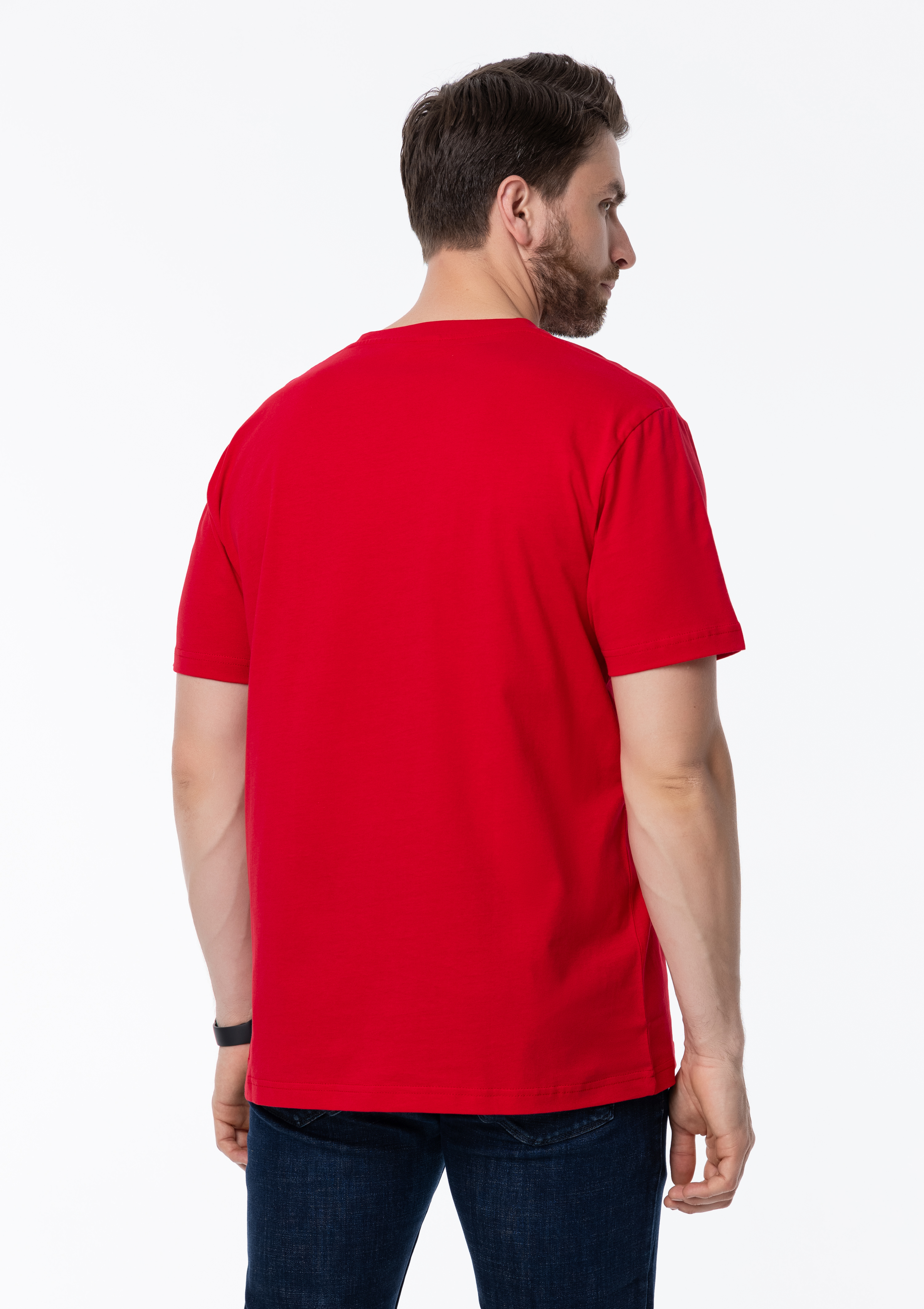 Размер мужской футболки: XXL/54. Параметры модели: рост 190 см.; обхват груди 108 см.; обхват талии 87 см.; обхват бедер 104 см.