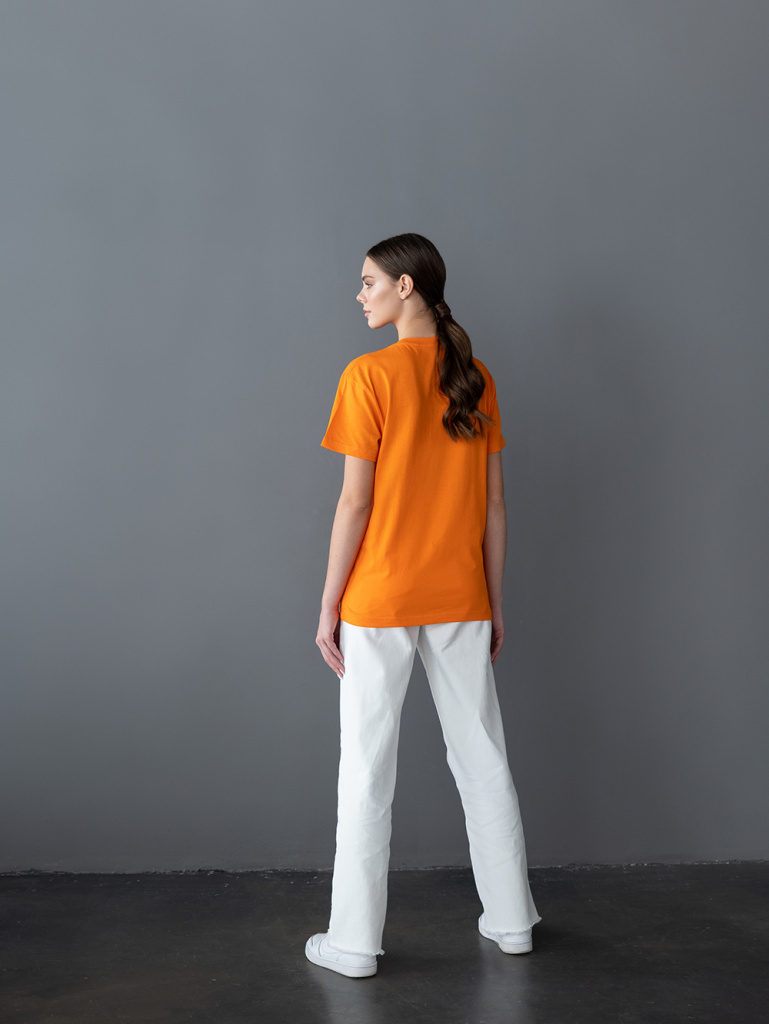 Футболка выполнена из мягкого и прочного полотна из 100% хлопка. Материал обладает отличными влагоотводящими и воздухопроницаемыми свойствами. Ткань легкая и приятная к телу.