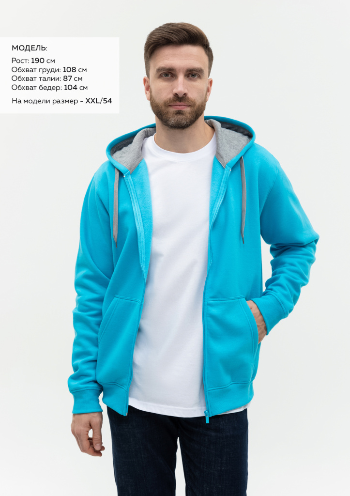 Размер мужской футболки: XXL/54. Параметры модели: рост 190 см.; обхват груди 108 см.; обхват талии 87 см.; обхват бедер 104 см. -