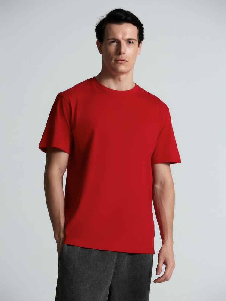 Базовая футболка унисекс без боковых швов. Полотно прошло активное крашение и предварительную усадку, благодаря чему изделие надолго сохраняет цвет и форму.- Круглая горловина выполнена резинкой 1х1