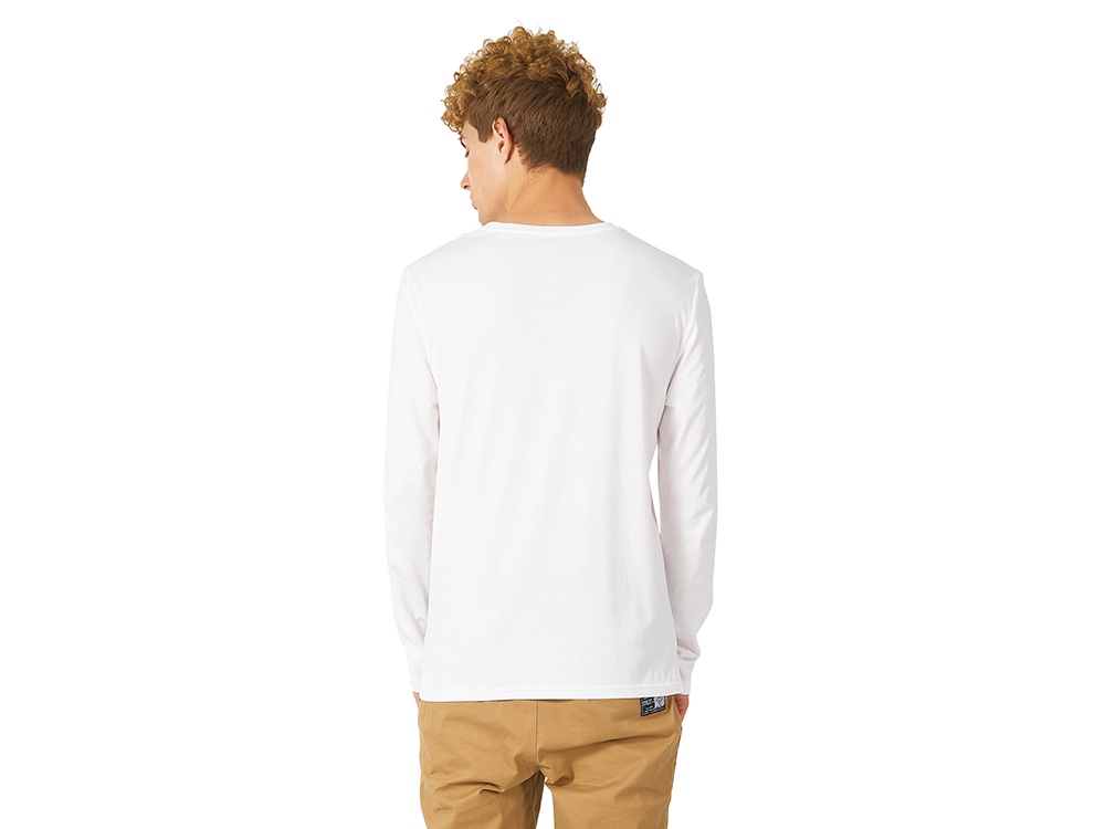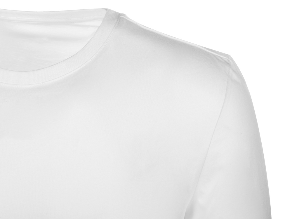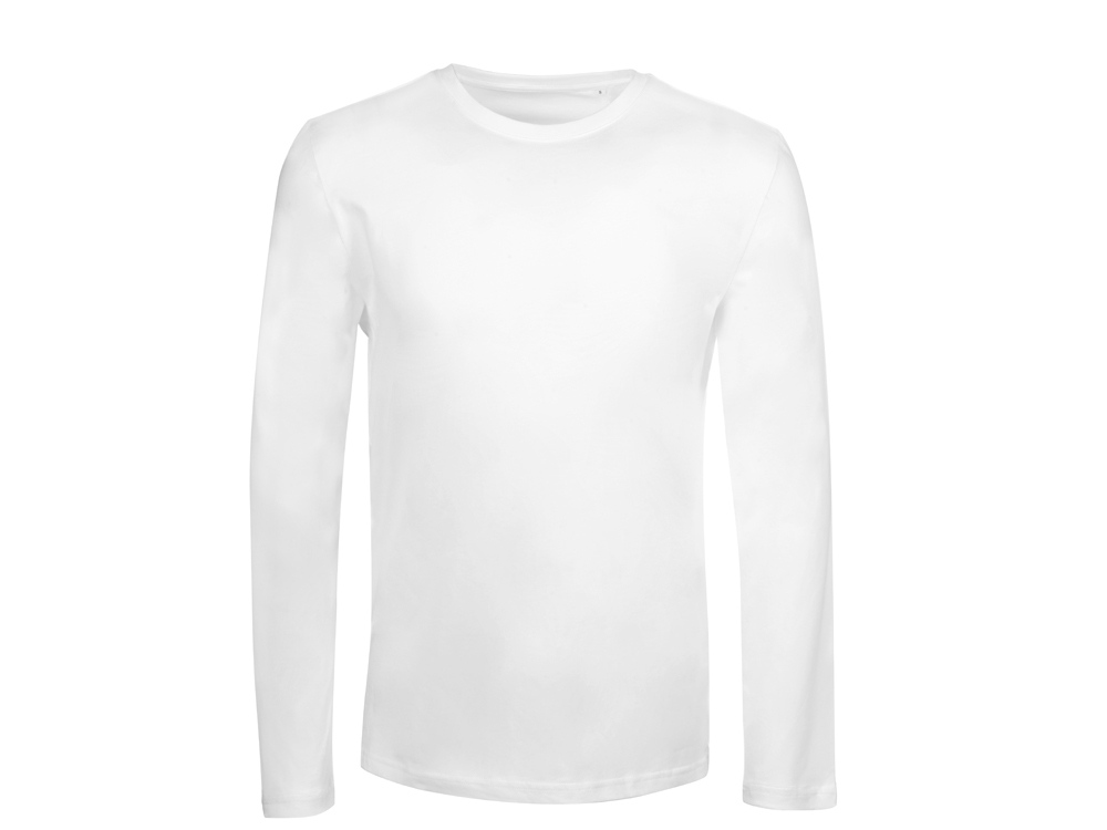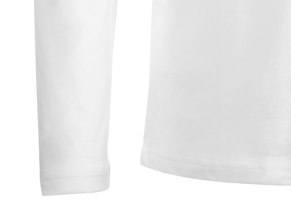 Футболка с длинным рукавом комфортной посадки с боковыми швами. Горловина обработана рибом 1х1 и тесьмой по спинке. Футболка выполнена из хлопкового джерси. -