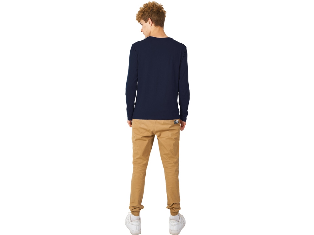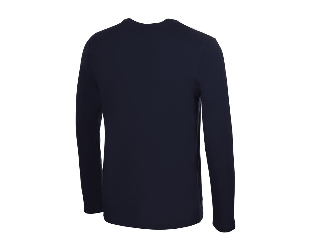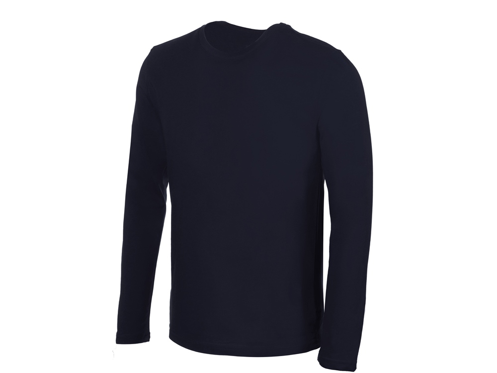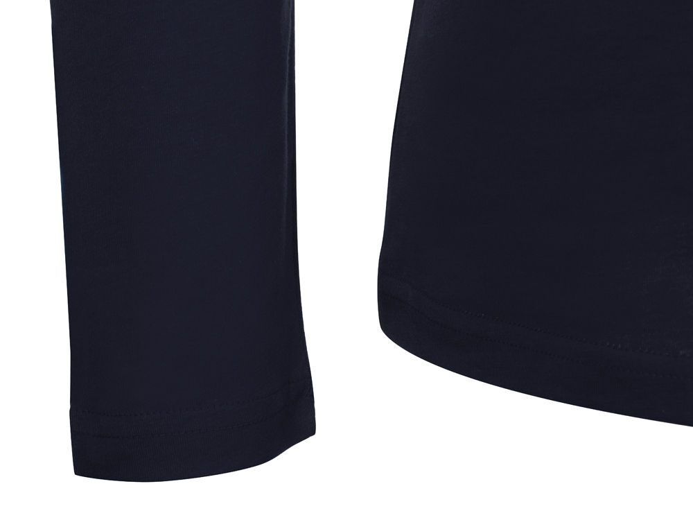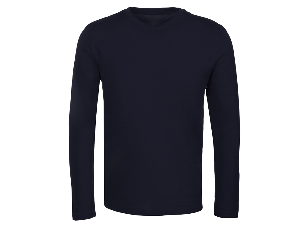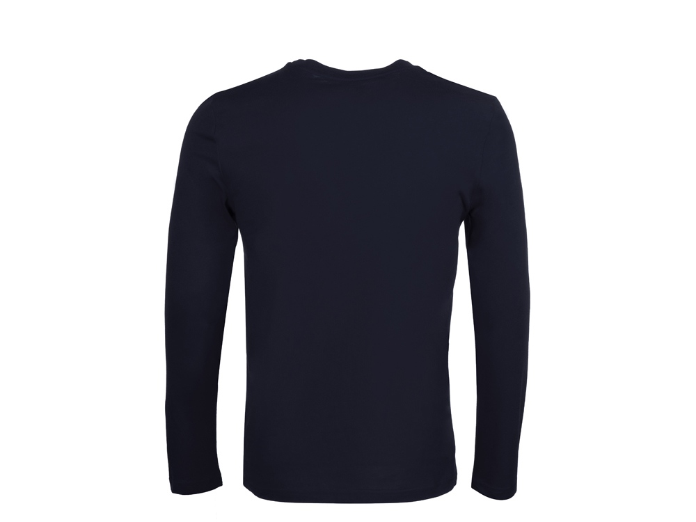 Футболка с длинным рукавом комфортной посадки с боковыми швами. Горловина обработана рибом 1х1 и тесьмой по спинке. Футболка выполнена из хлопкового джерси. -