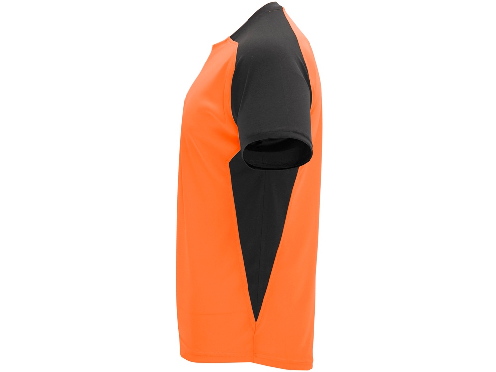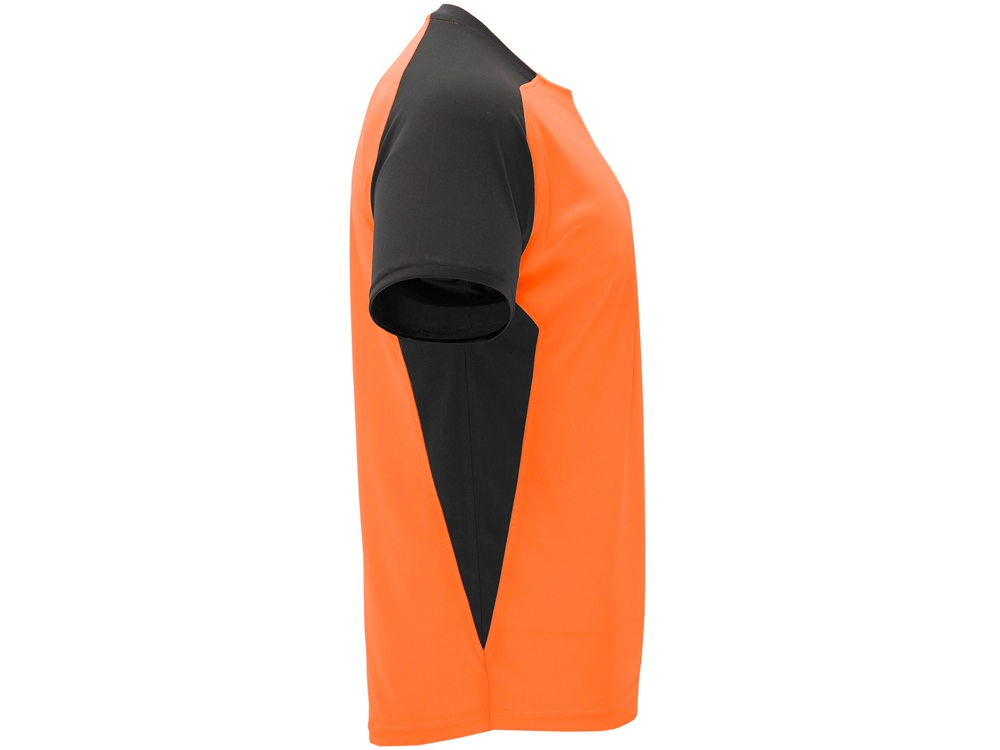 Спортивная футболка с коротким рукавом реглан. Круглый вырез горловины. Контрастные рукава и боковые вставки. -