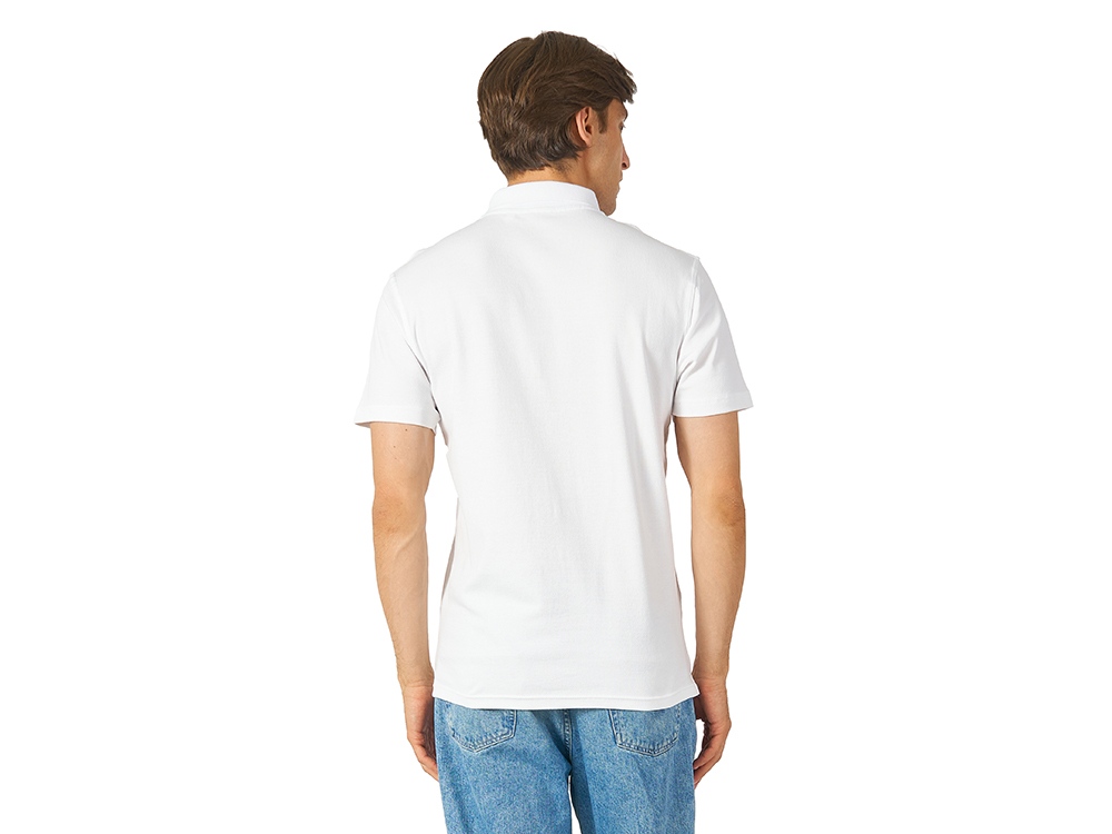 Поло из плотного пике 200гр, планка с застежкой на 3 пуговицы в тон с гравировкой бренда. Горловина внутри обработана тесьмой из основного полотна, разрезы в боковых швах.