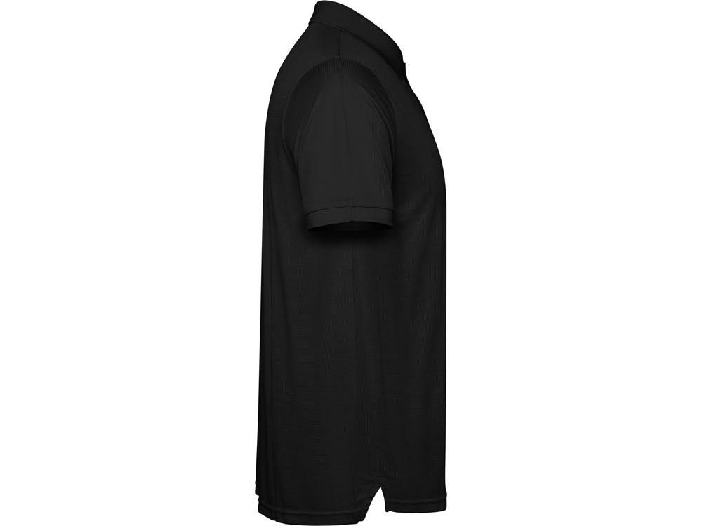 Мужское поло с коротким рукавом из технологичного полотна. Рибовый воротник 1х1, застежка на кнопки. Отстрочка в тон. Рибовые манжеты.