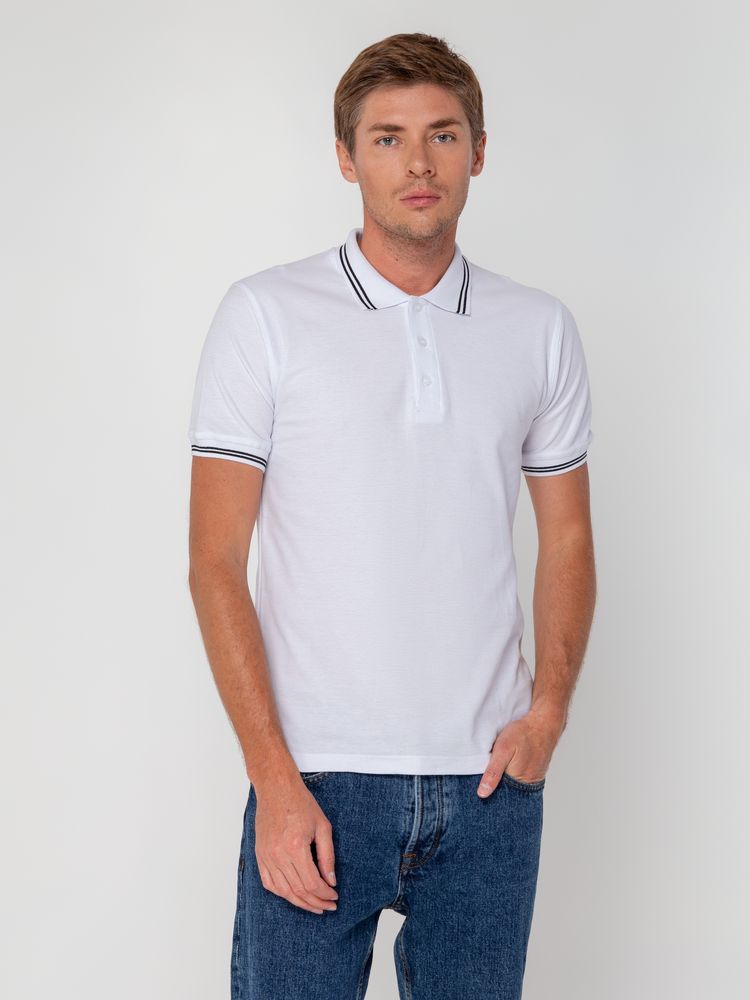 Мужская рубашка поло прямого силуэта с контрастными деталями.- Три перламутровые пуговицы в тон