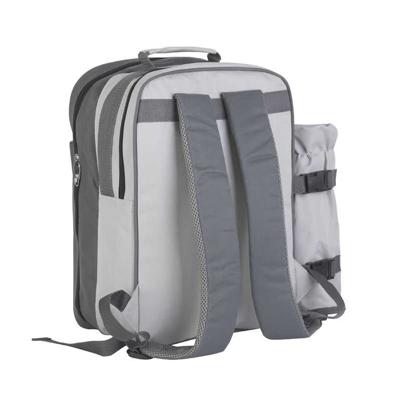 Рюкзак для пикника "Дания" с комплектом приборов на 4 персоны. Большое холодильное отделение и съемный кулер для термоса (бутылки вина).Дополнительный внешний карман на молнии увеличивает полезный объем рюкзака. Прочные лямки с мягкими вставками и сеткой для комфортного путешествия на дальние расстояния.