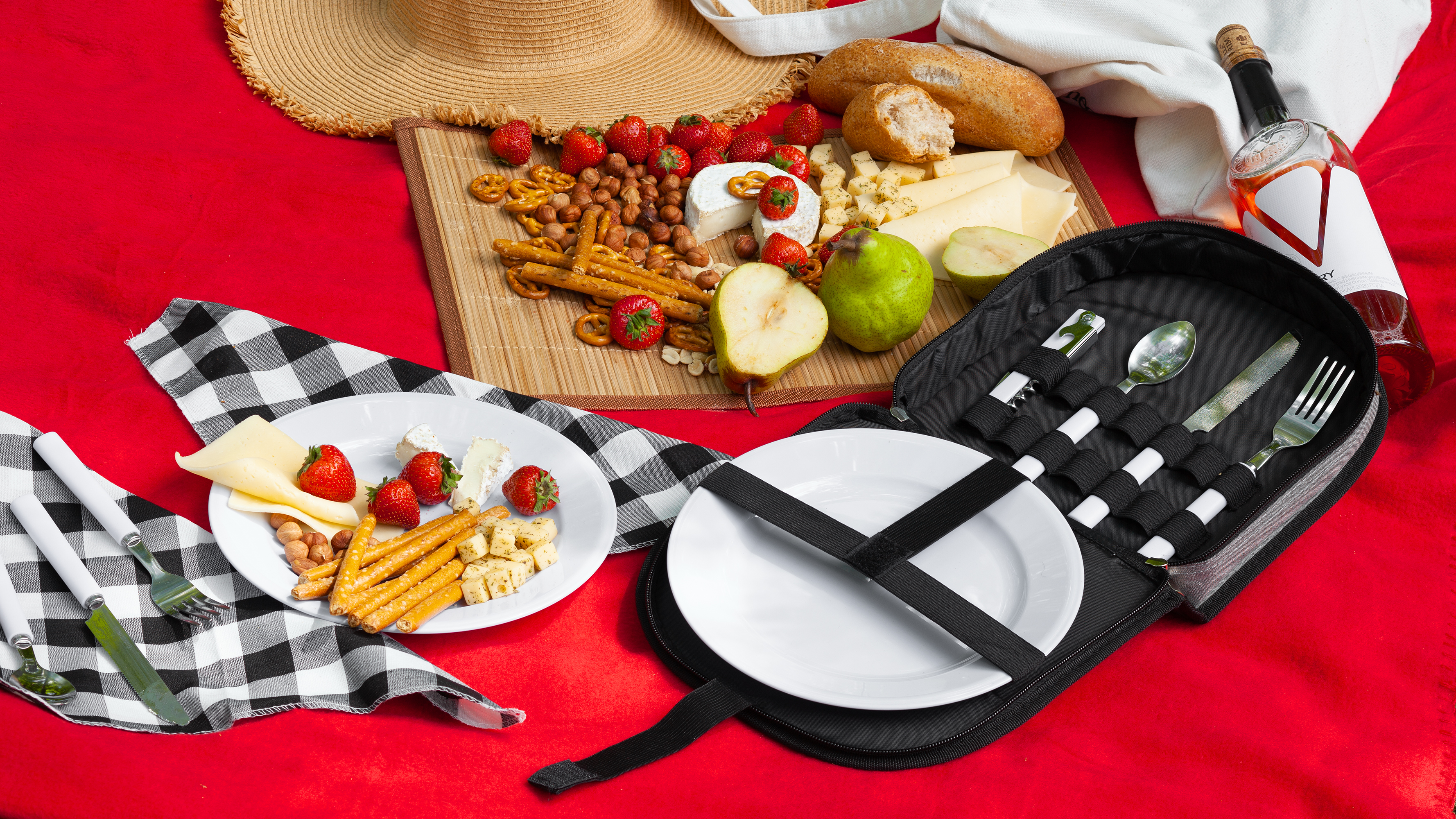 В набор входят: тарелки, ножи сервировочные, вилки, ложки, нож сомелье, салфетки.