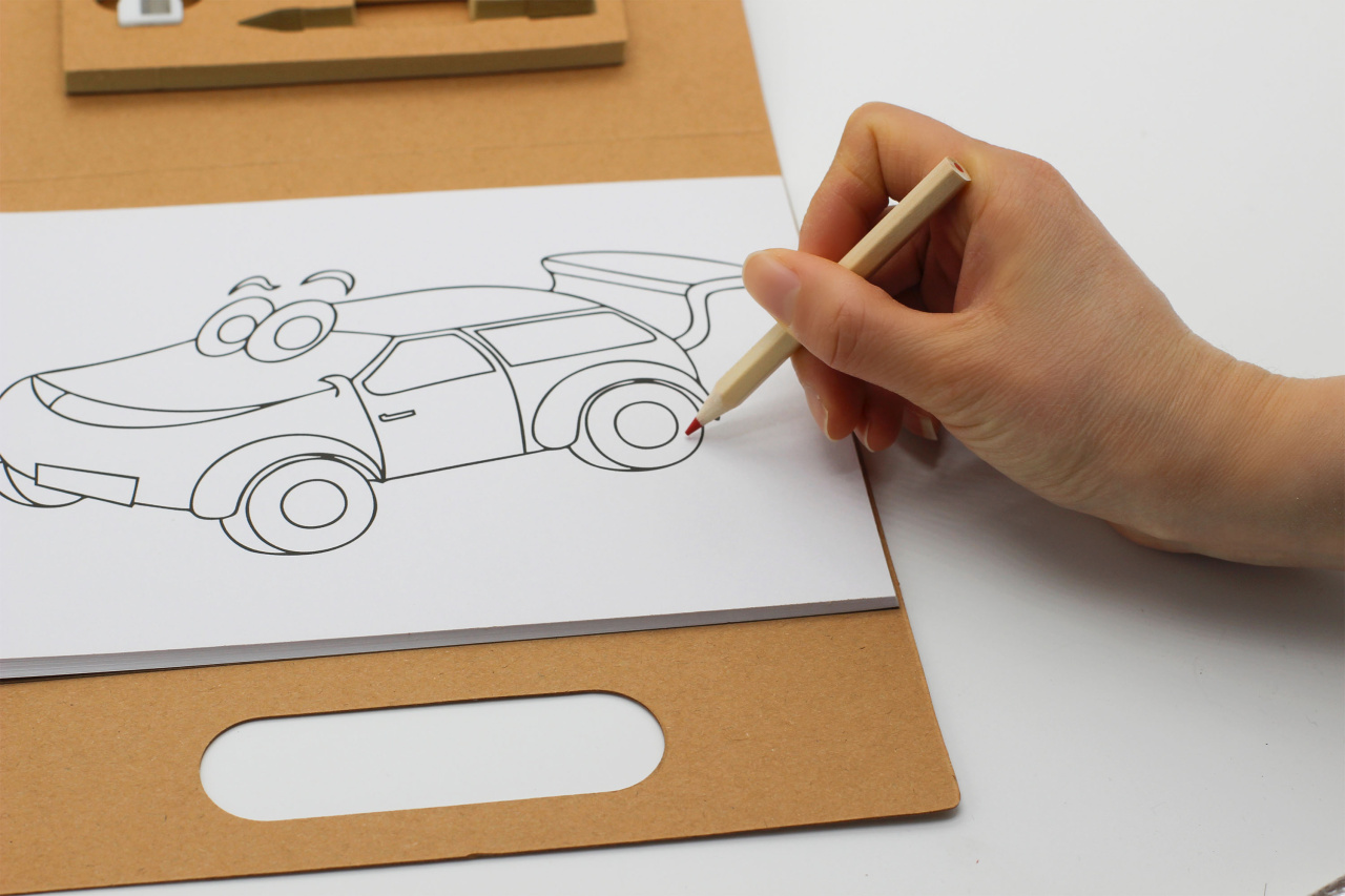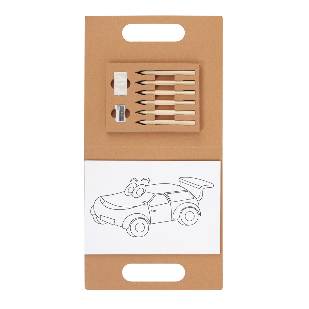 Картонная папка позволяет удобно хранить все принадлежности и рисунки.
