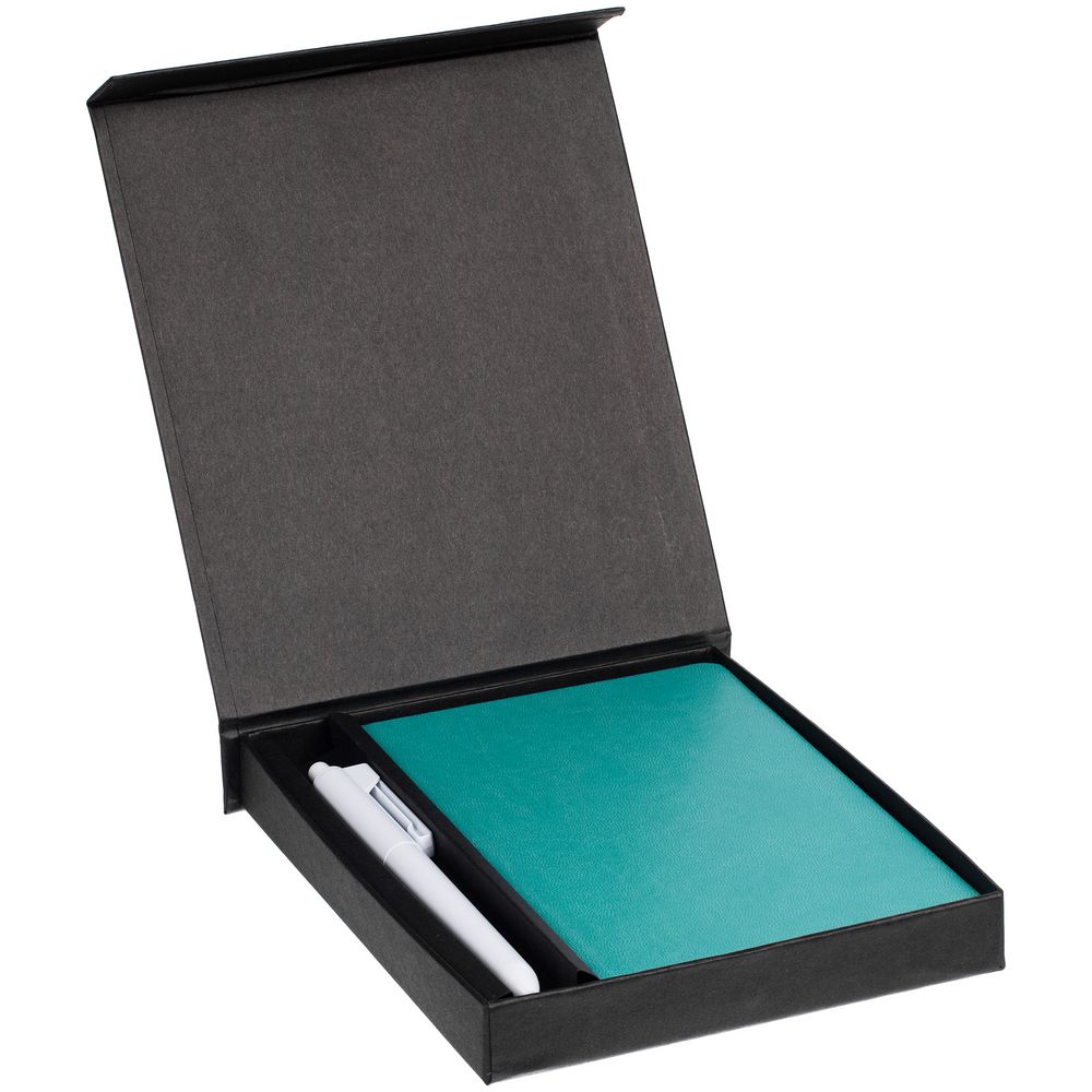 блокнот - искусственная кожа; ручка - пластик; коробка - переплетный картон