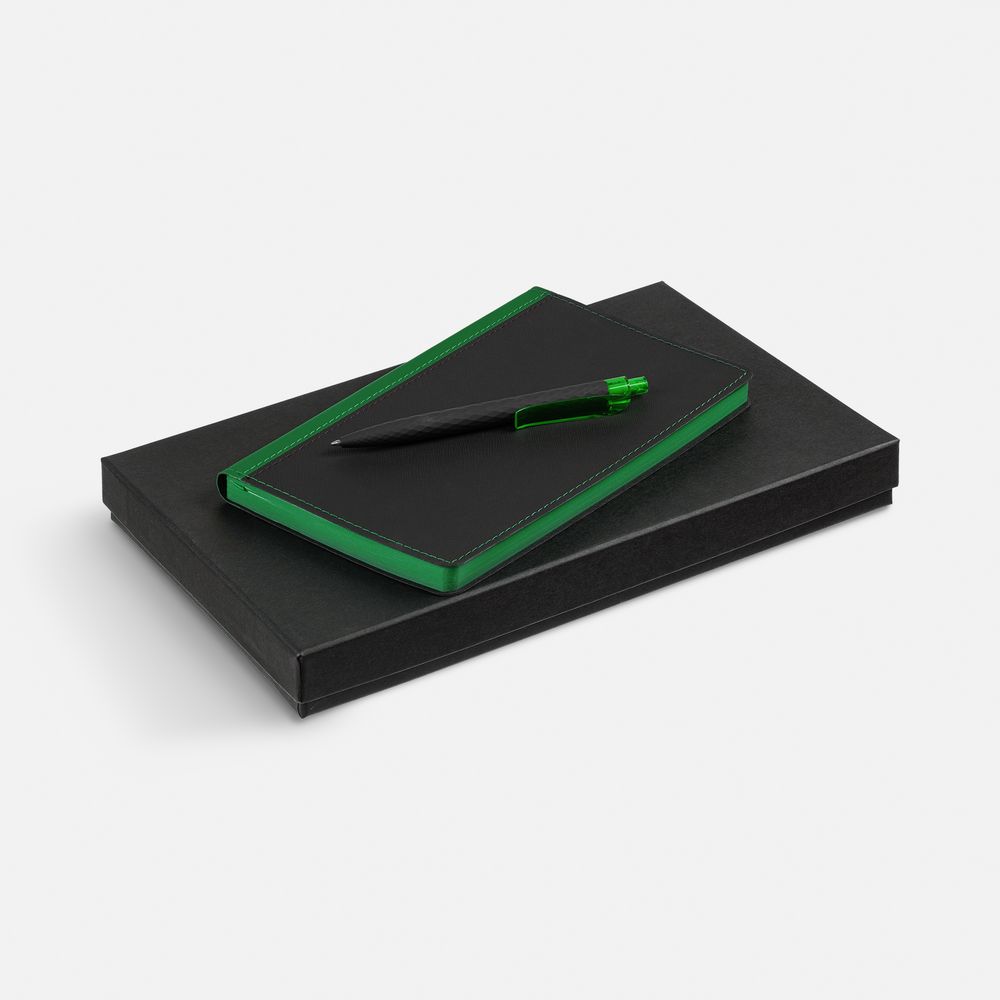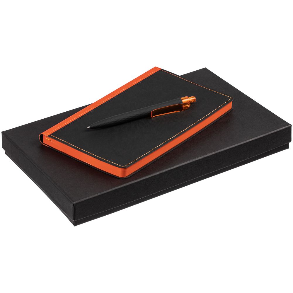 Стильный двухцветный ежедневник с гибкой обложкой и цветным обрезом, а также ручка в тон. -