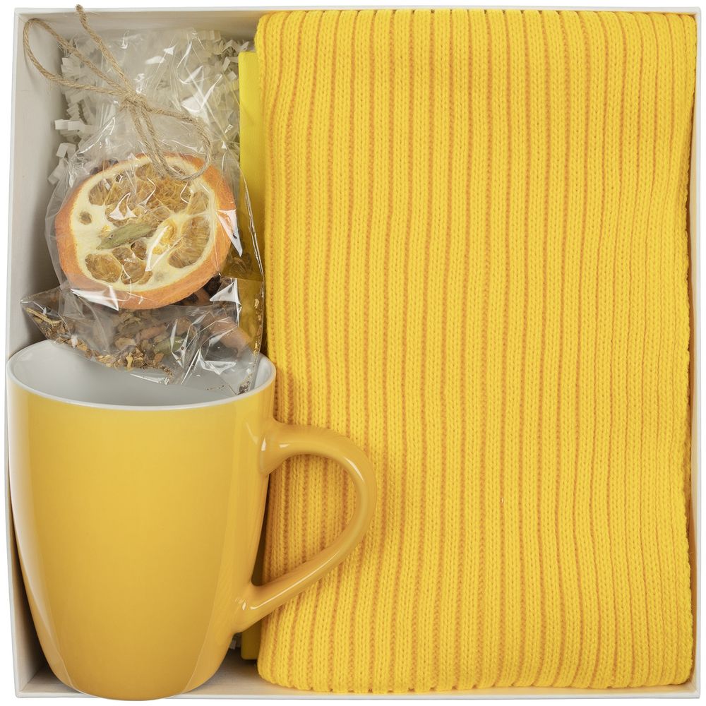 Оригинальный стильный шарф станет модным акцентом в деловом гардеробе и согреет в прохладную погоду. Яркая кружка идеально подойдет для любимых напитков и создаст атмосферу уюта даже во время напряженного рабочего дня. А для дополнительного заряда энергии в наборе есть ароматные специи для глинтвейна, который поможет поддержать бодрость духа.