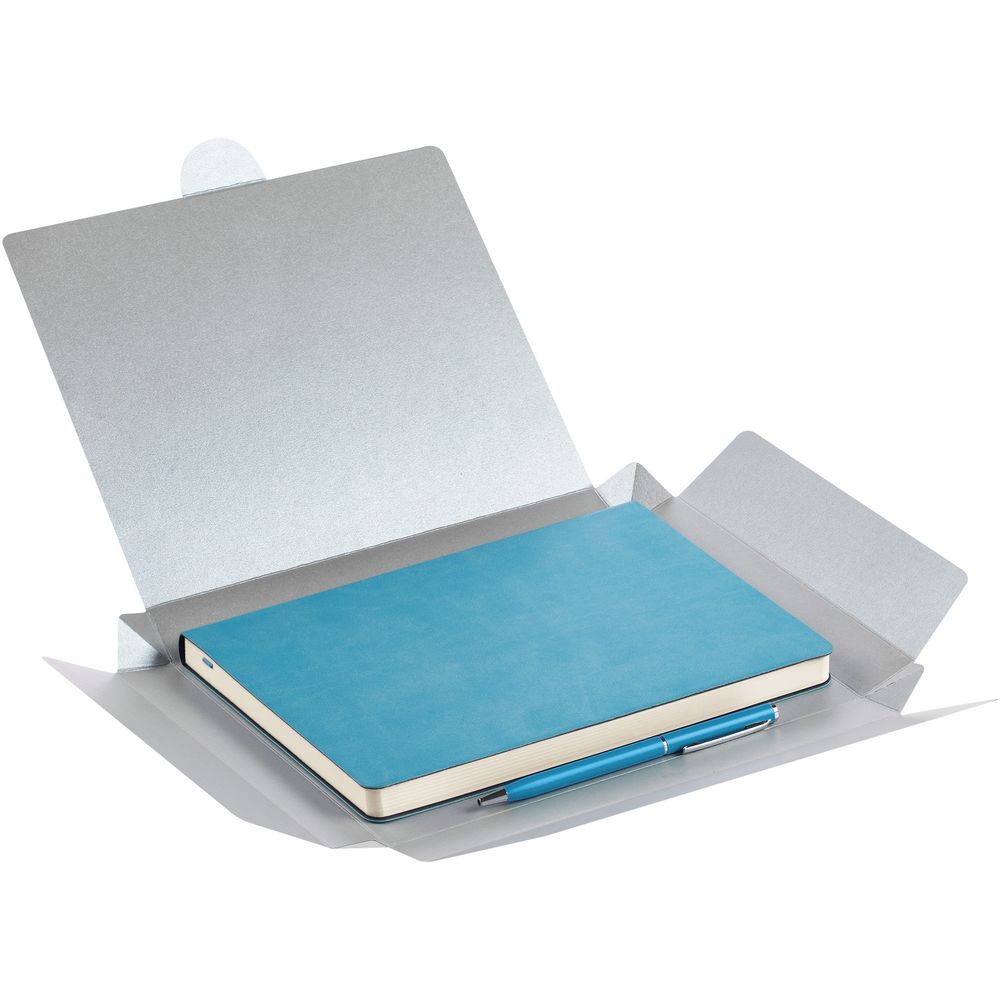 Недатированный ежедневник с гибкой обложкой из материала Latte с ляссе в цвет обложки, а также ручка в тон — в подарочной коробке из дизайнерского картона. -