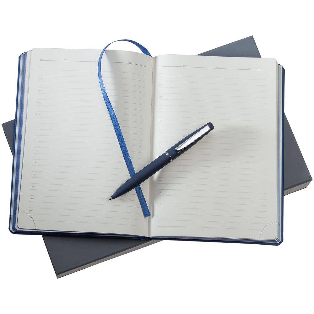 ежедневник - искусственная кожа; ручка - металл; покрытие софт-тач; коробка - картон