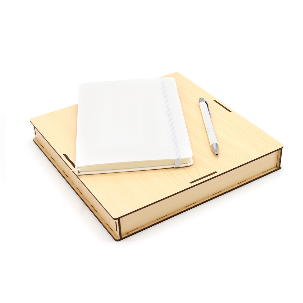 Оригинальный и стильный набор для письма, отличающийся утонченным стилем и совершенством деталей. Вам не придется думать над подарком - просто бери и дари! Упаковка из древесноволокнистной плиты высокой плотности (ХДФ/HDF) обеспечивает удобство погрузки и разгрузки, сохранность в пути. Состав набора: Упаковка из древесноволокнистной плиты - 1 шт. (Артикул: 53300) Ложемент 24,1х24,1х2 см (блокнот А5 + ручка) - 1 шт. (Артикул 53058.1) Блокнот A5 "Monte" с линованными страницами - 1 шт. (Артикул: 51000.03) Ручка металлическая Molly - 1 шт. (Артикул: 1033.15)- Виды нанесений: Гравировка CO2-А2, УФ-печать
