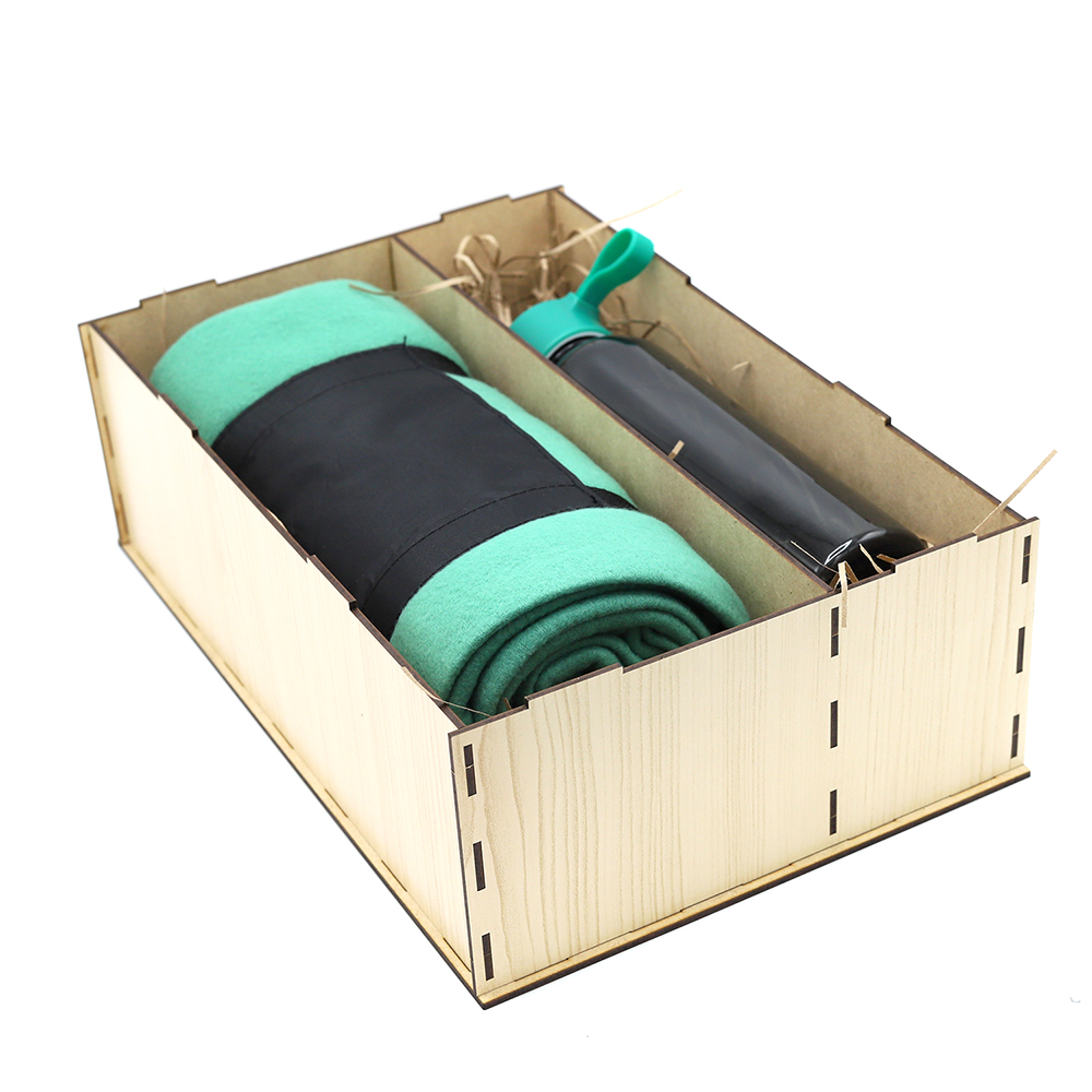 Очень изящный подарочный набор, гармонично сочетающий в себе традиции и современные тенденции! Упаковка из древесноволокнистной плиты высокой плотности (ХДФ/HDF) обеспечивает удобство погрузки и разгрузки, сохранность в пути. Состав набора: Упаковка из древесноволокнистной плиты (2 отделения) (Артикул: 53054) - 1 шт. Пластиковая бутылка Rama - 1 шт. (Артикул: 14014.04) Плед Арго- 1 шт. (Артикул: 16000.04) Наполнитель - стружка бумажная, бежевый – 1 шт. (Артикул: 62000.13)- Виды нанесений: Гравировка CO2-А1, УФ-печать, Круговая УФ-печать, Термотрансфер DTF