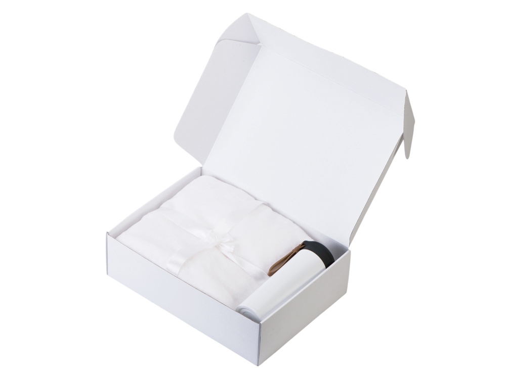 коробка - картон, плед - флис из 100% полиэстера, термос - нержавеющая сталь, soft-touch