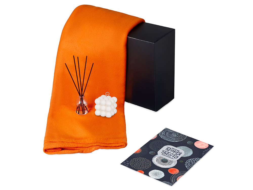 плед - флис, полиэстер, диффузор - стекло, свеча - 90% парафин очищенный, 10% соевого воска, фитиль хлопковый, миндаль - пластик, мешок - нетканый материал (спанбонд), коробка - картон