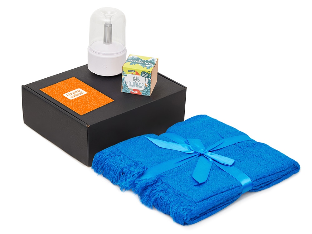 плед - 100% акрил, увлажнитель-аромадиффузор - АБС палстик, поликарбонат, набор для выращивания - дерево, мешок - нетканый материал (спанбонд), коробка - картон