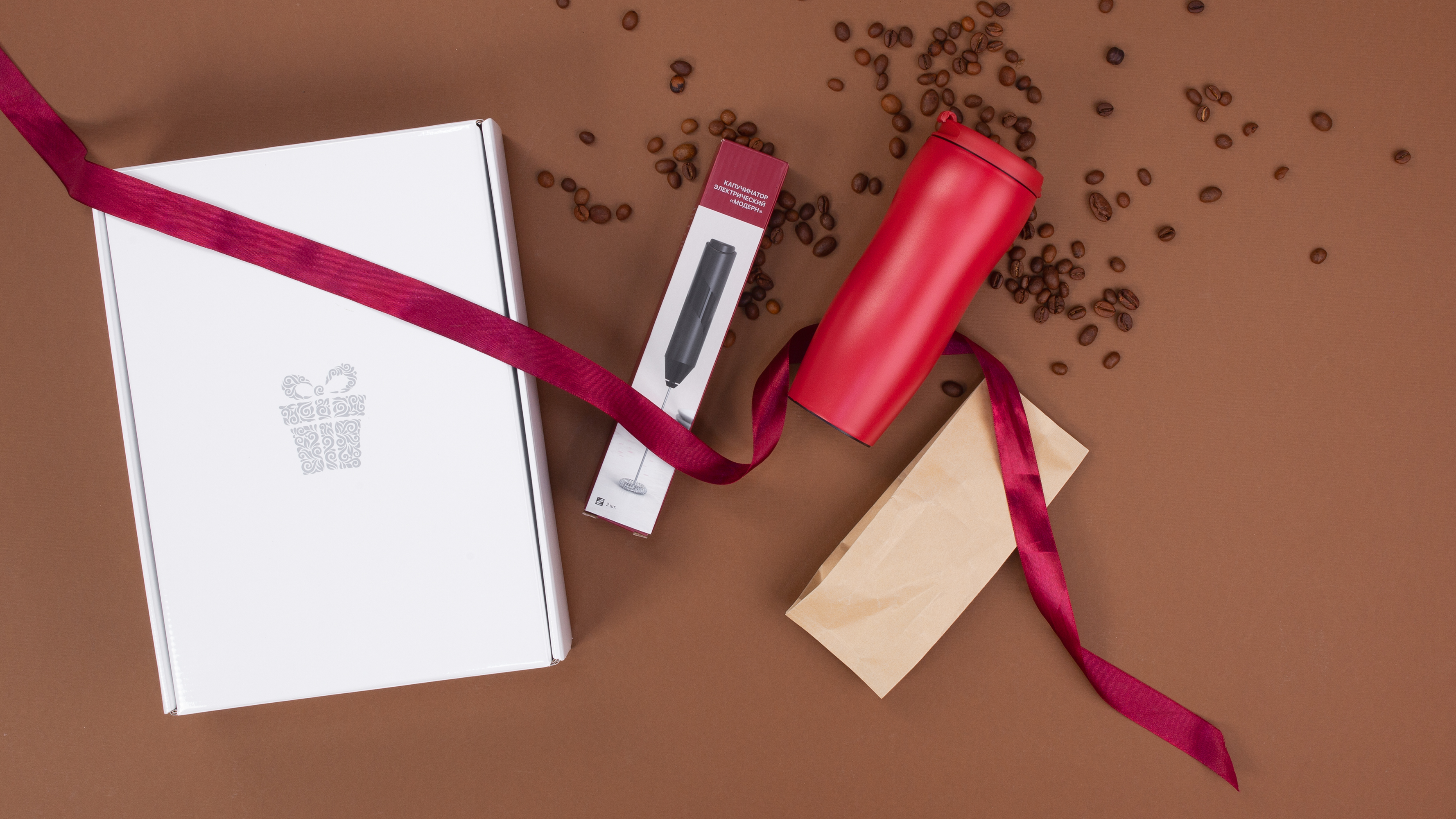 Набор, который станет приятным подарком для всех любителей кофе: зерновой кофе, термостакан и капучинатор для молока, чтобы ваш напиток получился с пенкой!