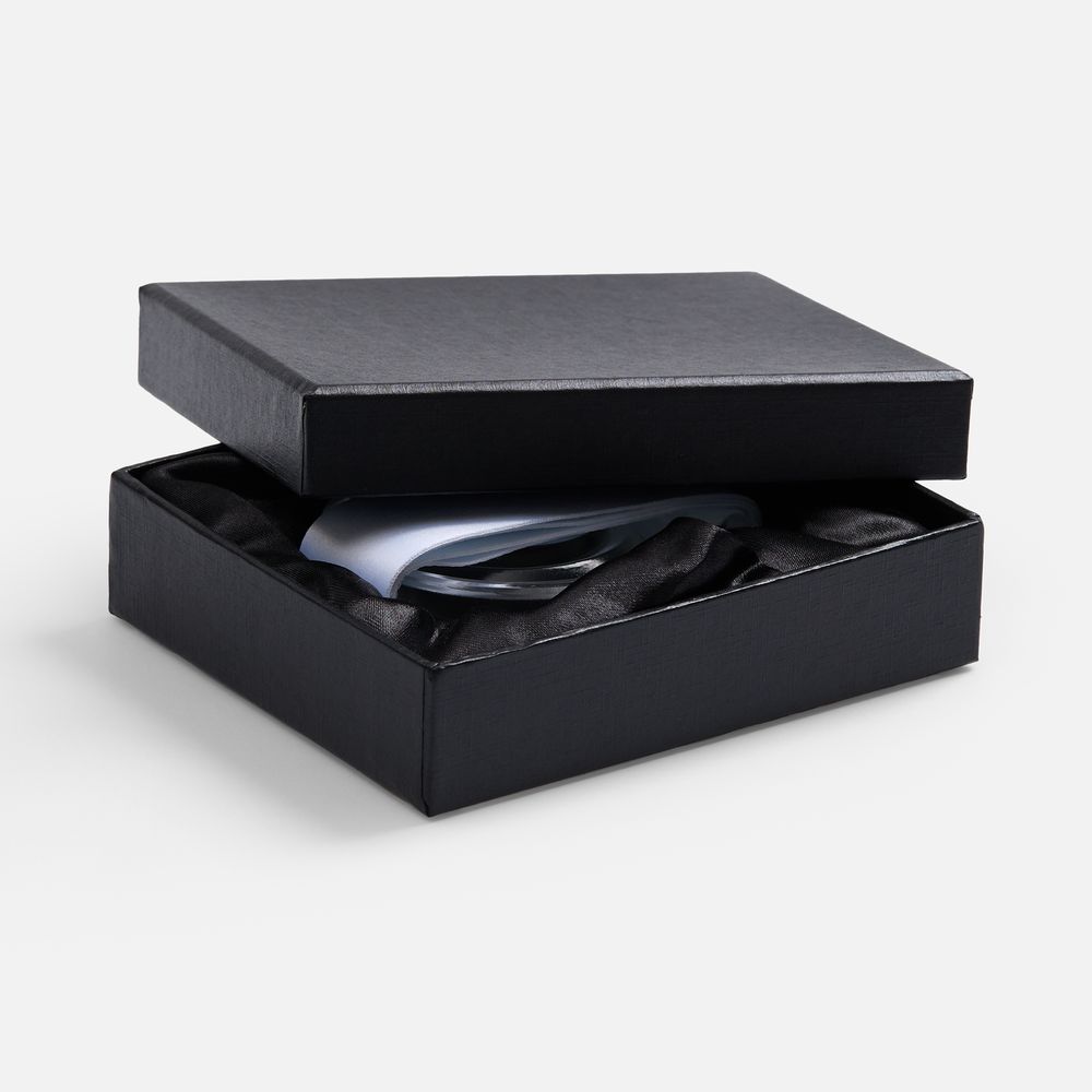 8,7х7,5х1 см; лента: 90х3 см; упаковка: 14х12х3,5 см