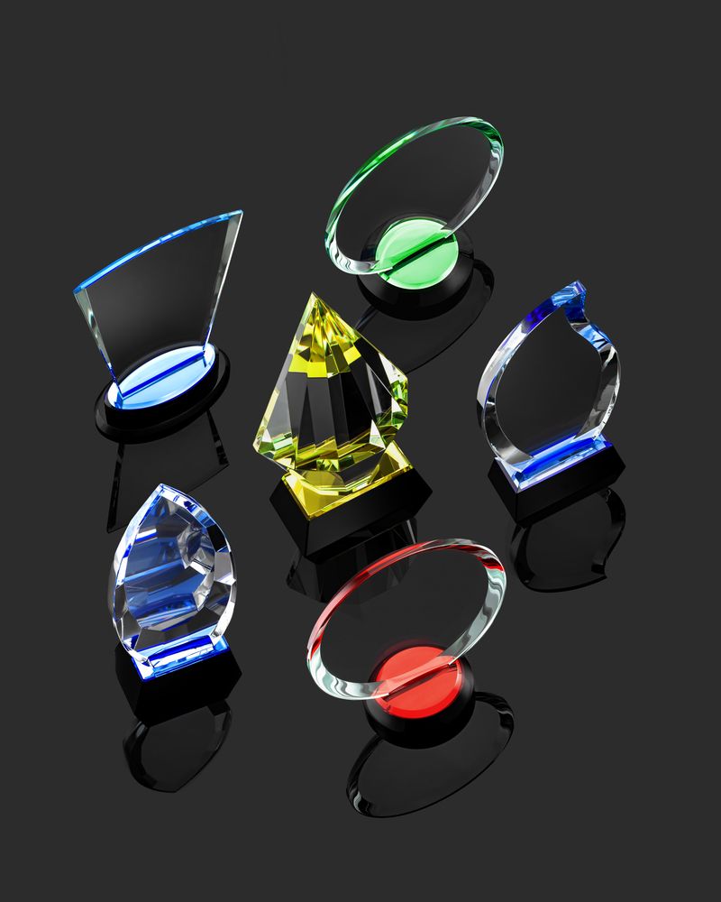 Стела изготовлена из стекла К9, в основе которого лежит оптическое боросиликатное стекло. Эту марку стекла отличает низкий процент посторонних включений, высокий показатель преломления и высокая прозрачность — идеальные качества для изготовления наград премиального уровня.