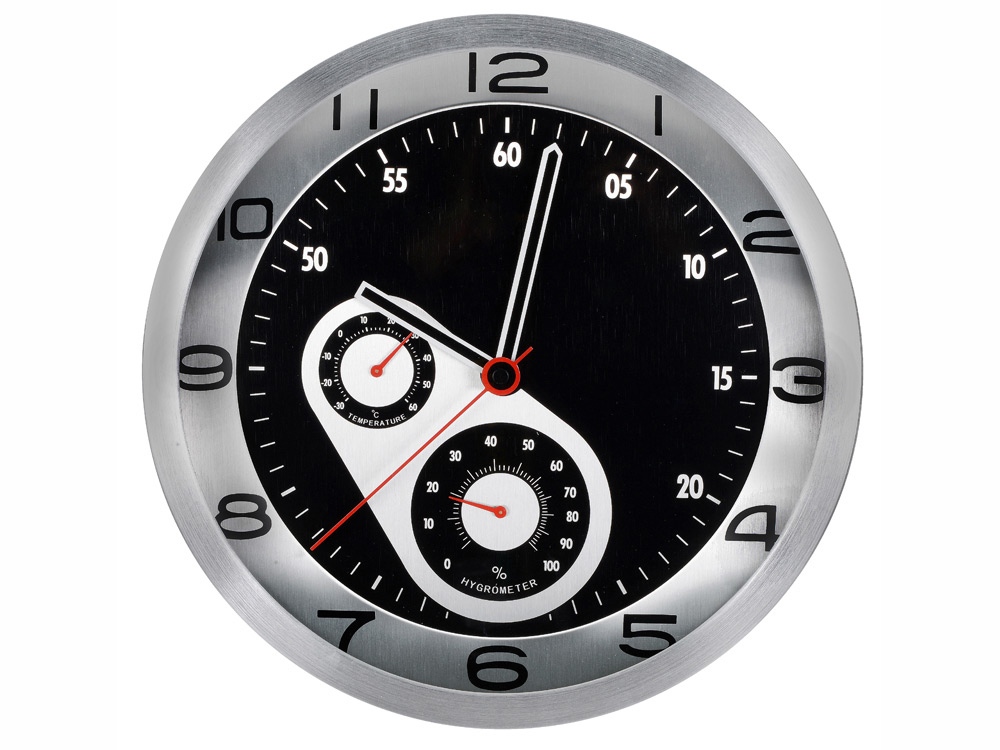 Настенные часы с термометром и гигрометром показывают не только точное время, но и температуру, а также влажность воздуха в помещении. Стильный аксессуар для любого офисного интерьера. -