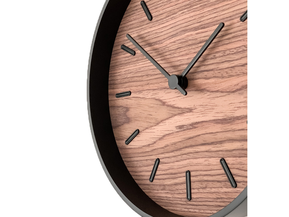 Tiger - это современные настенные часы из натурального шпона с часовыми метками в черном цвете. Циферблат натурального цвета сделан из шпона ореха, а обод, стрелки и часовые метки выполнены в черном цвете.