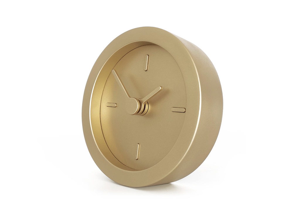 Стильная модель настольных часов Sarah в золотом цвете. Матовая поверхность смягчает контрастность бликов и теней, оставляя теплый отблеск благородного металл. Золотые акценты прекрасно сочетаются с современными интерьерными трендами. Именно золотые аксессуары становятся определяющими чертами интерьера, при этом, не нарушая его гармонии.