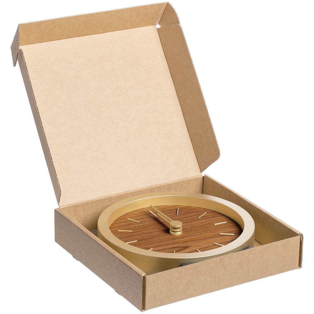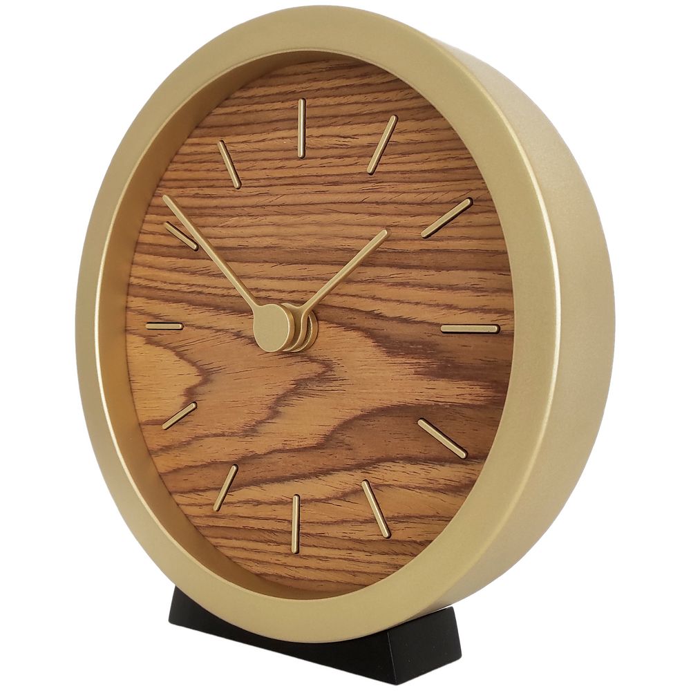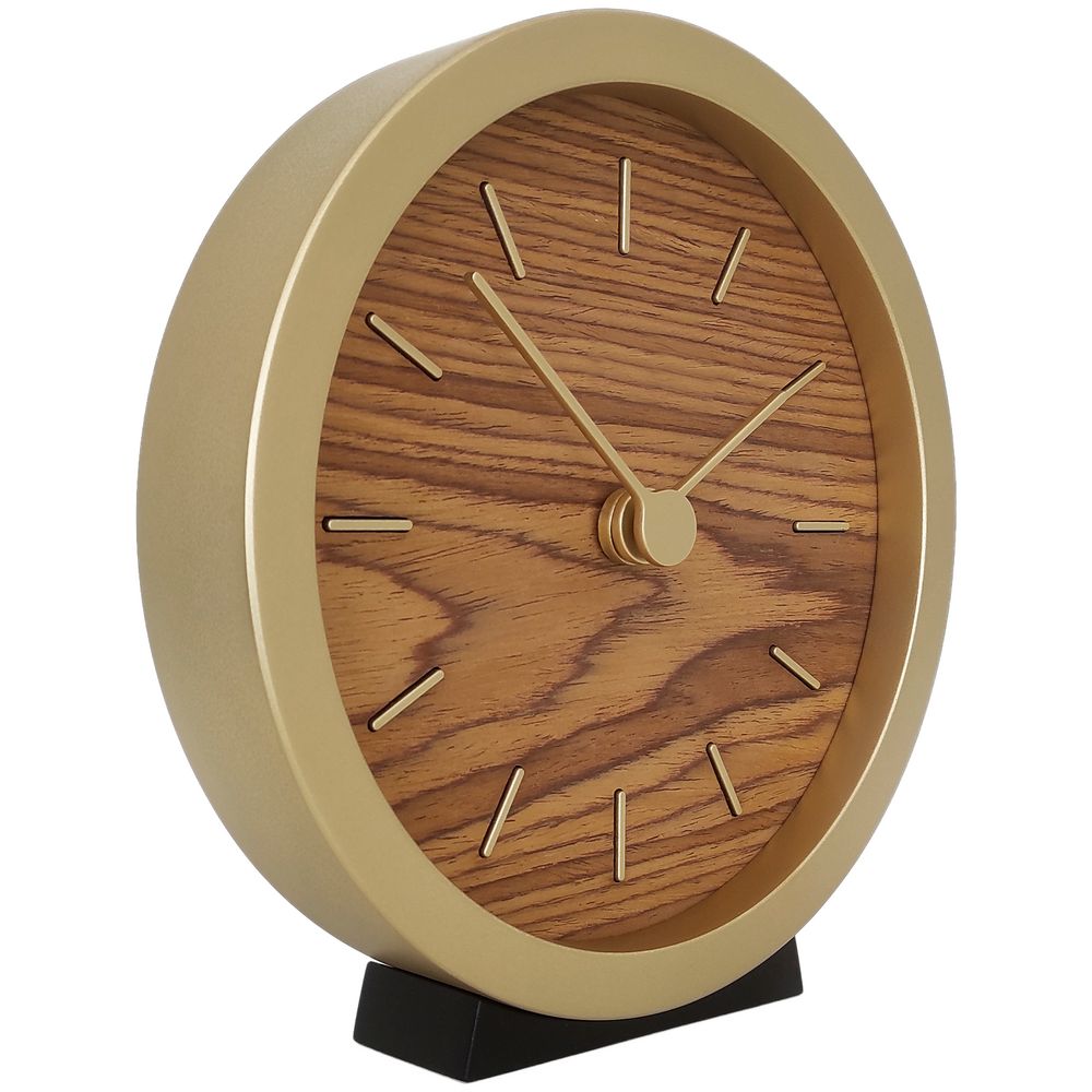 Гармоничное сочетание натурального шпона теплого оттенка и приглушенного золотистого обрамления — в универсальных часах Gracie. Часы можно повесить на стену или разместить на столе или полке — для этого в комплекте предусмотрена специальная подставка.