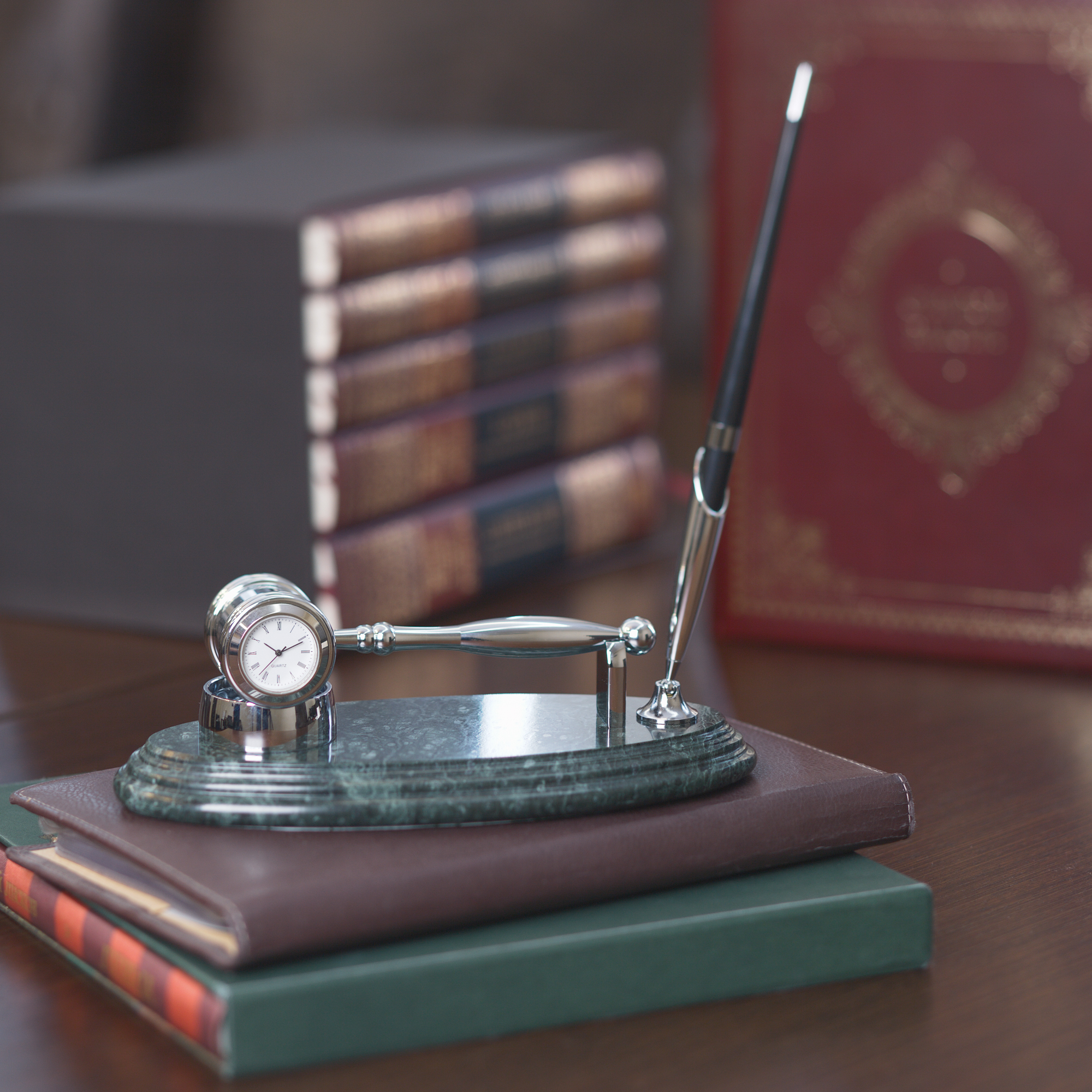 Подставка "Правосудие" с часами и ручкой
