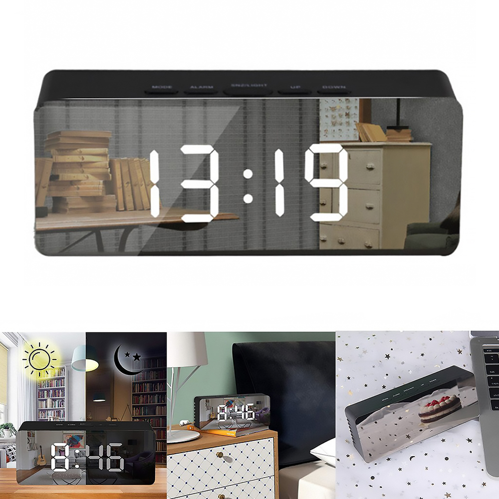 Идеальные настольные электронные часы Mirex с высококонтрастным цифровым LED дисплеем. Дополнительная функция дисплея, которая не оставит равнодушной женщин – это зеркальный экран в который прекрасно можно любоваться. Функции: Время / Температура / Будильник. Устройство может работать от батареек, либо с помощью кабеля питания, входящего в комплект поставки. Батарейки в комплект не входят!- Виды нанесений: УФ-печать А2, Тампопечать большая, УФ-Лак, УФ-Цвет+Лак